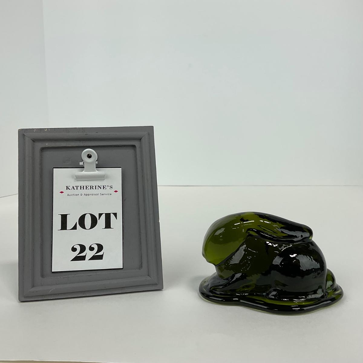 One Viking mid century green crouching rabbit figure with sticker. 2 1/4 inches tall by 4 inches wide. This piece has no damage, and appears to be in great shape with no visable chips, cracks, or broken pieces. Please see photos for details and condition. Any condition statement is given as a courtesy to a client, is an opinion, and should not be treated as a statement of fact. Reference to condition written, oral or within a condition report shall not be regarded as a full account of condition and may not include all defects, alterations, or restorations. Absence of a condition report does not imply a lot is flawless or lacking imperfections or damage. Katherine’s Auction & Appraisal Service shall have no responsibility for any error or omission. Returns shall not be accepted on the basis of condition. ::: Shipping is available on this lot. If you require shipping you must let us know at the close of the auction. We will coordinate with you after the item has been won. Shipping fees will include insurance up to or exceeding the value of all items being mailed. If you have any questions regarding this lot please contact the auctioneer either via this website, by direct email or by phone. PICK UP TIMES and other important information can be found in the TERMS and DESCRIPTION of the auction. Please take a look for pertinent information. Thanks!