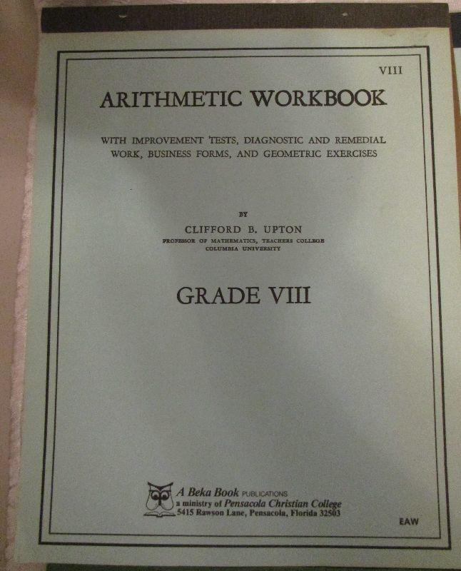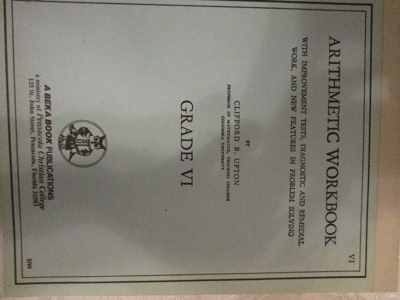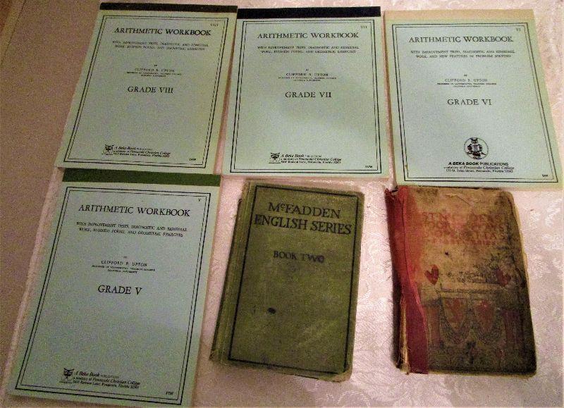 St. Nicholas Book of Plays & Operettas, 1922; McFadden English Series Book Two Language and Composition (school book, marks through out), 1928; Arithmetic Workbook Grade V, 1960: Arithmetic Workbook Grade VI, 1960; Arithmetic Workbook Grade VII, 1960; Arithmetic Workbook Grade VIII, 1960.