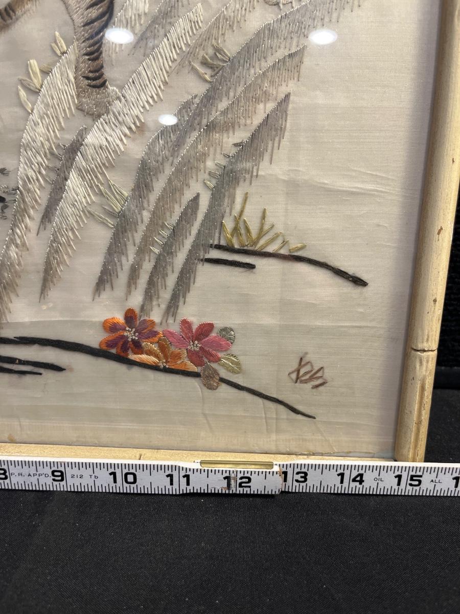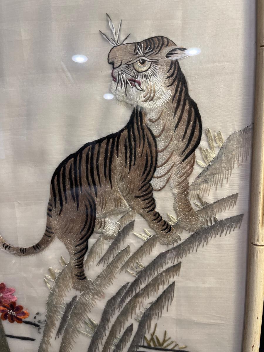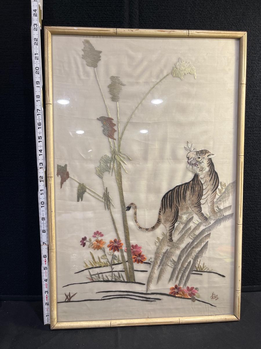 22- Vintage Embroidered Tiger in Bamboo-look frame