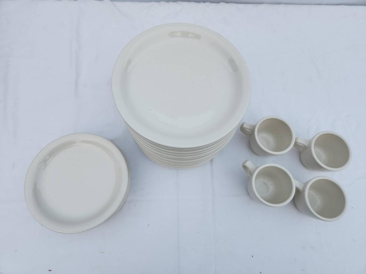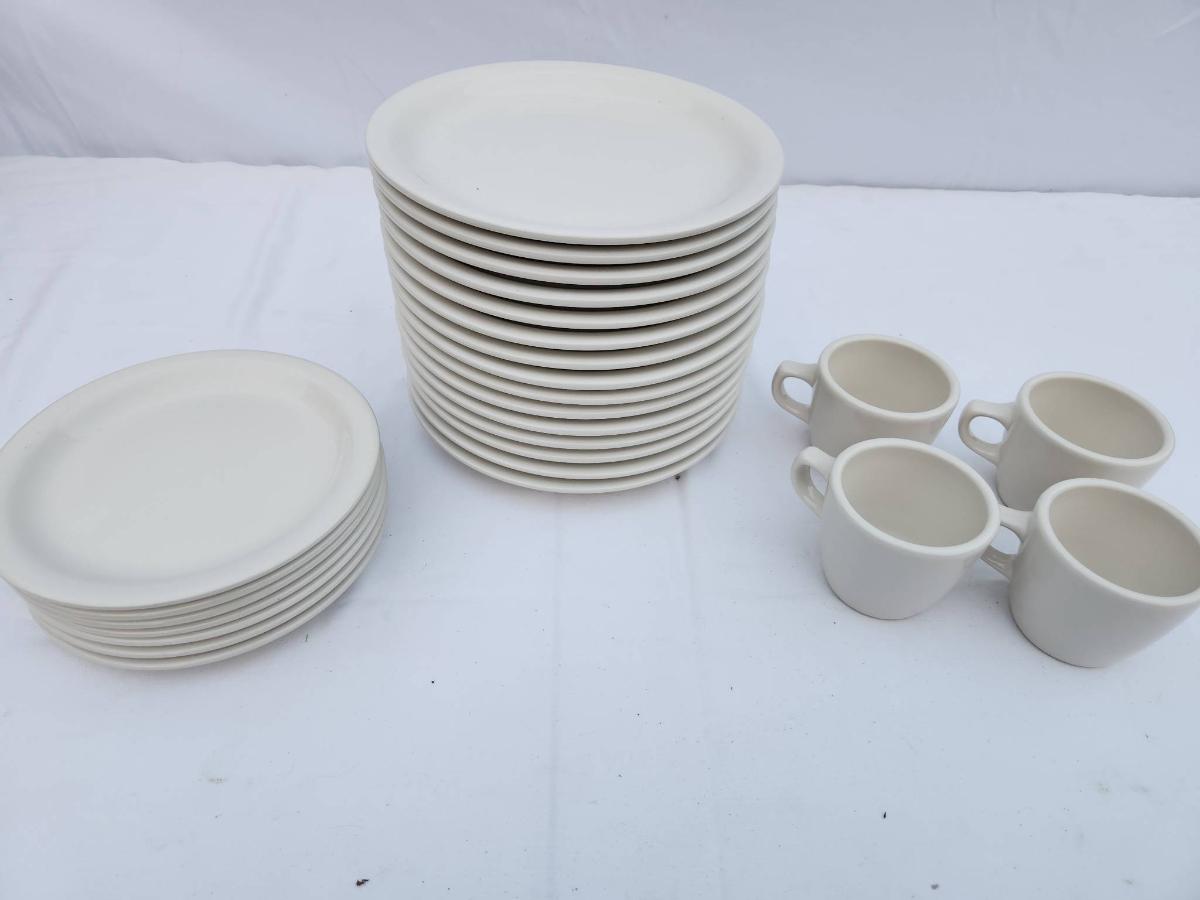 22 White Ceramic Restaurant-Style Dishes and Coffee Cups