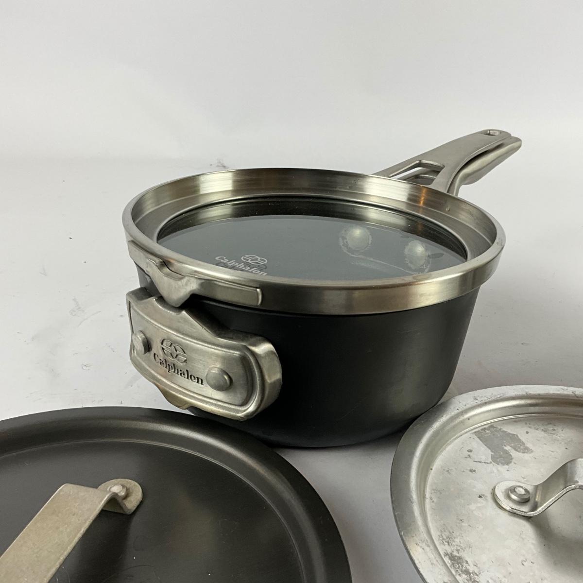 220 Calphalon Space Saving Commercial Anodized Pans with Extra LId and Colander