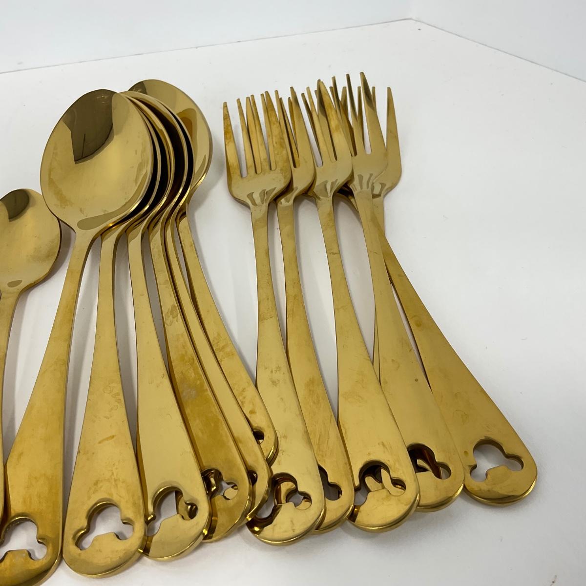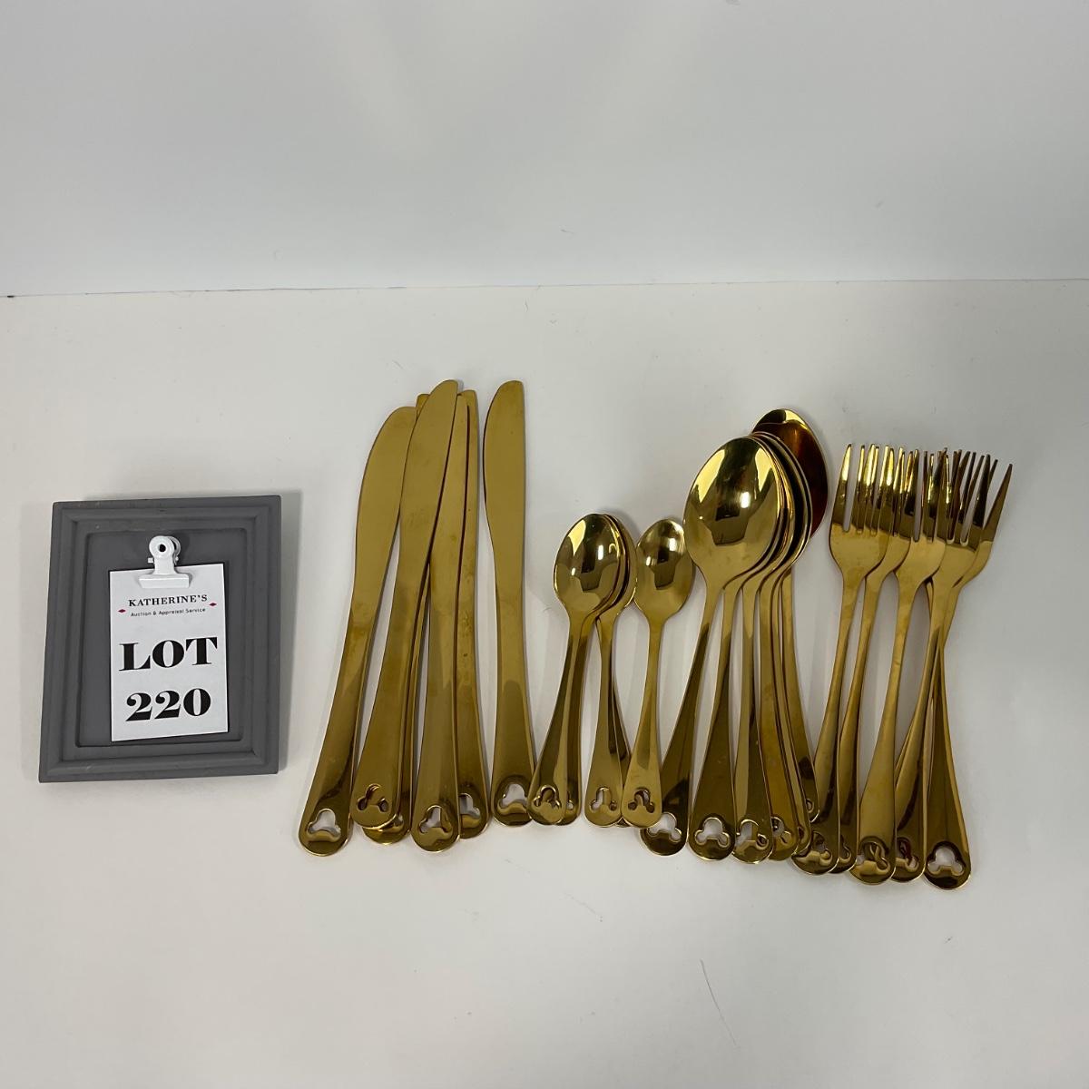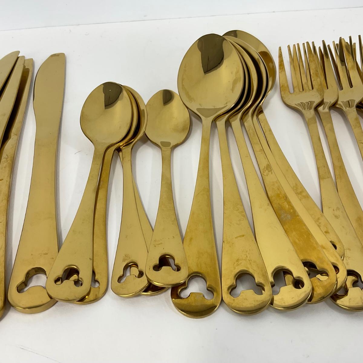 -220- KITCHEN | Mickey Mouse 23 Piece Gold Tone Silverware