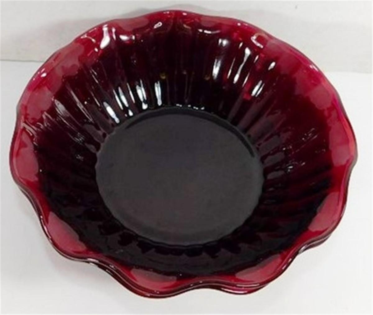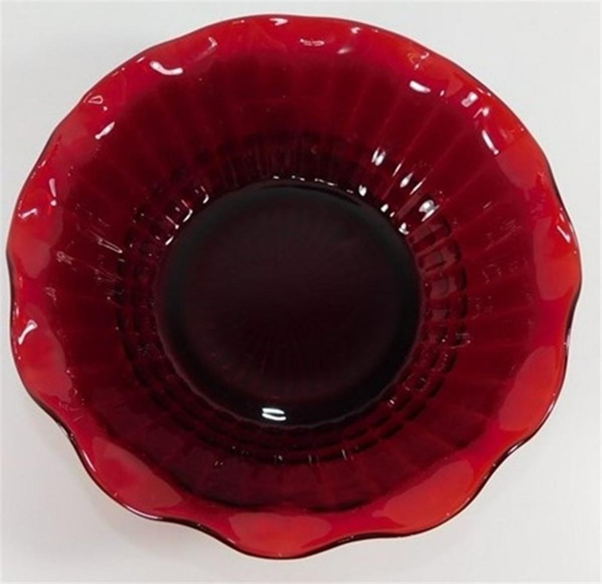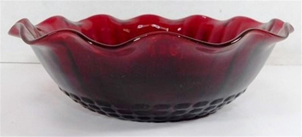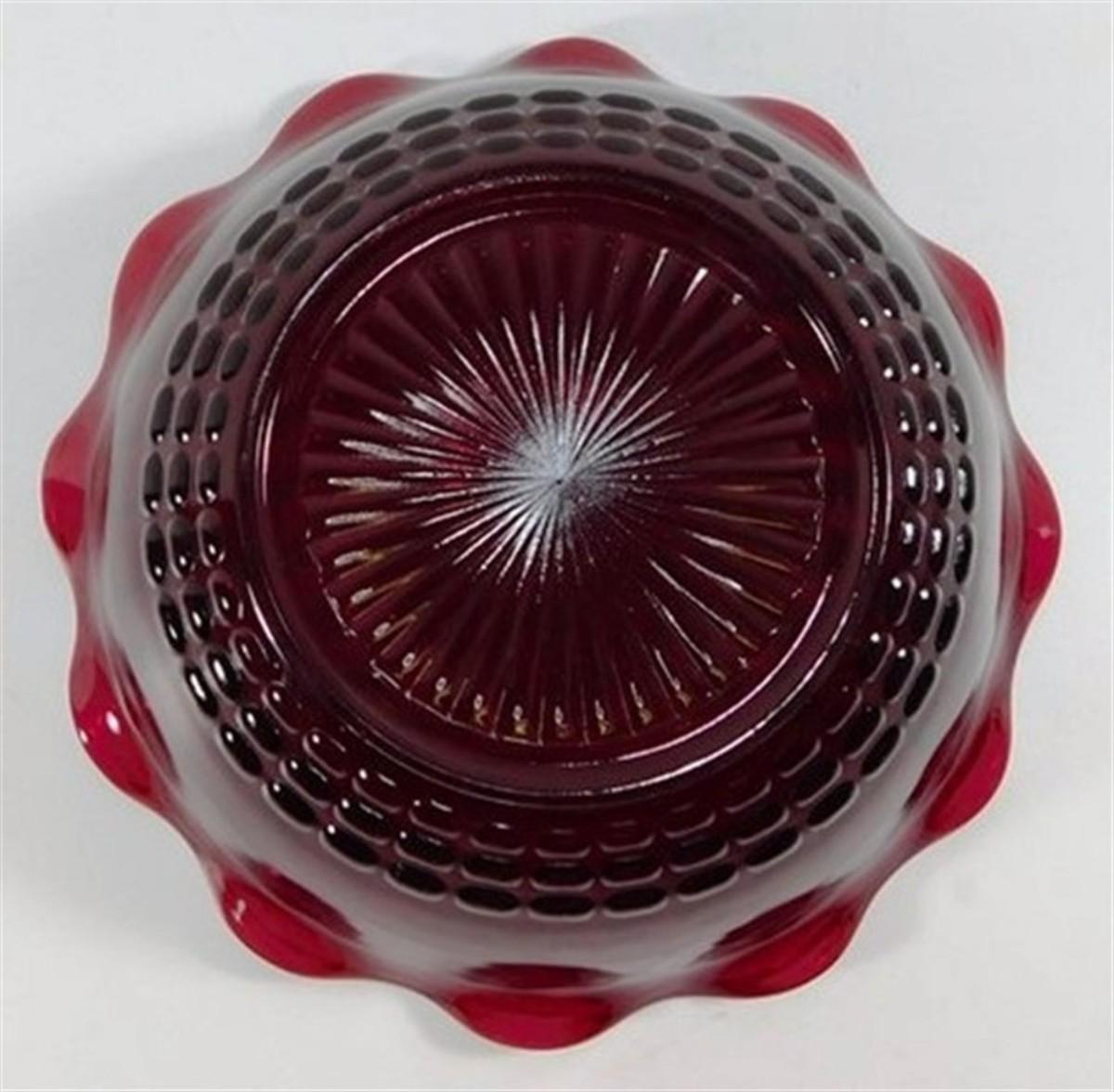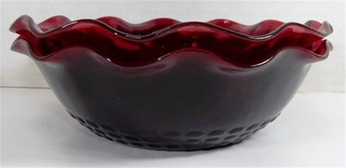 220 Lot of 2 Anchor Hocking Glass Bowls Royal Ruby Ruffle Ribs and Hobnails 6 1/2 x 2