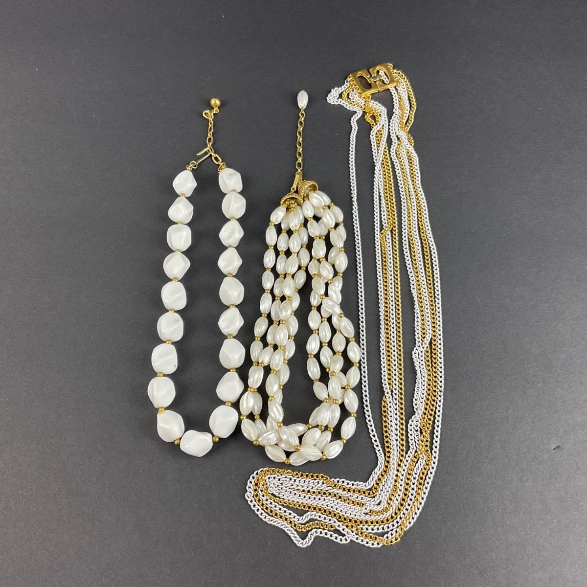 -220- TRIFARI | Gold Tone White Chunky Necklaces | Marked