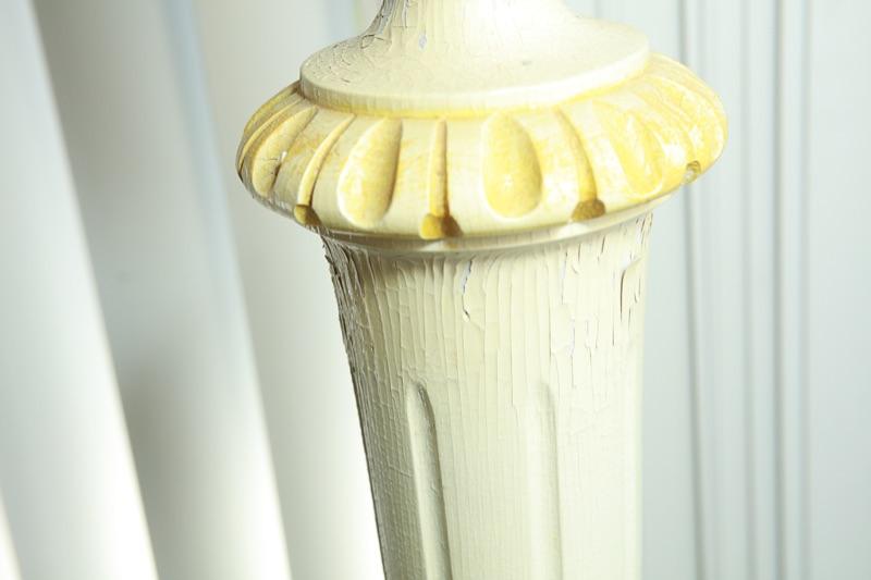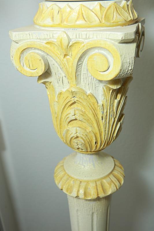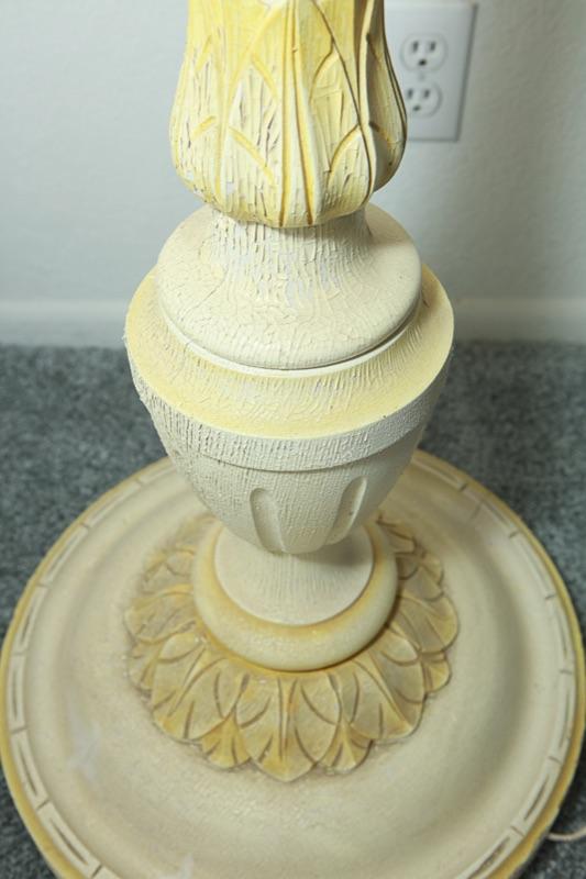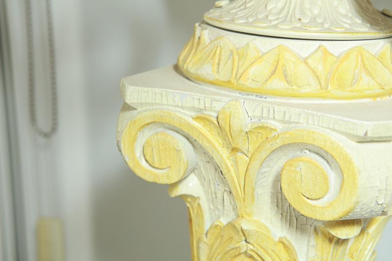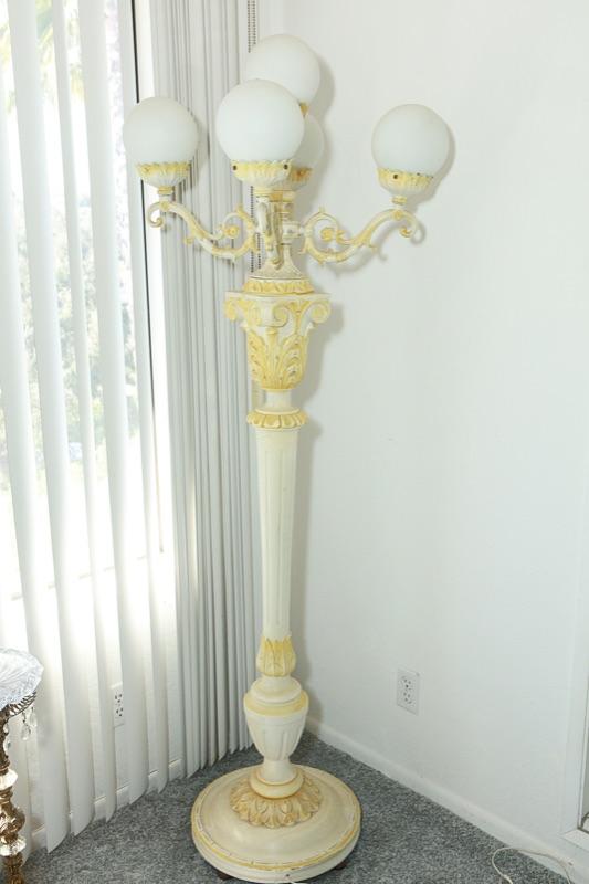 Multi global street lamp style floor lamp. 5 light lamp. Stands about 70" tall. White/cream colored paint finish gives it that French Provincial look. The paint is chipping/cracking, needs to be redone.