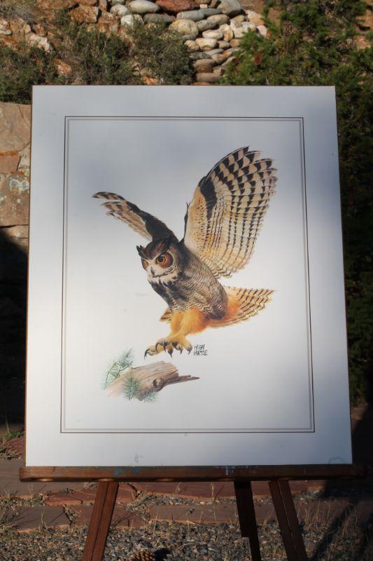 Lot 2-207: Vintage ArtBoard Fine Art Print of Owl Landing {28" x 22"}