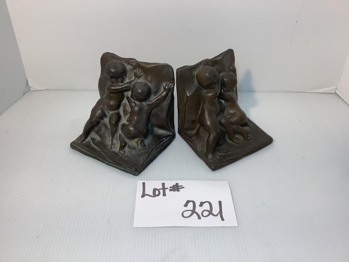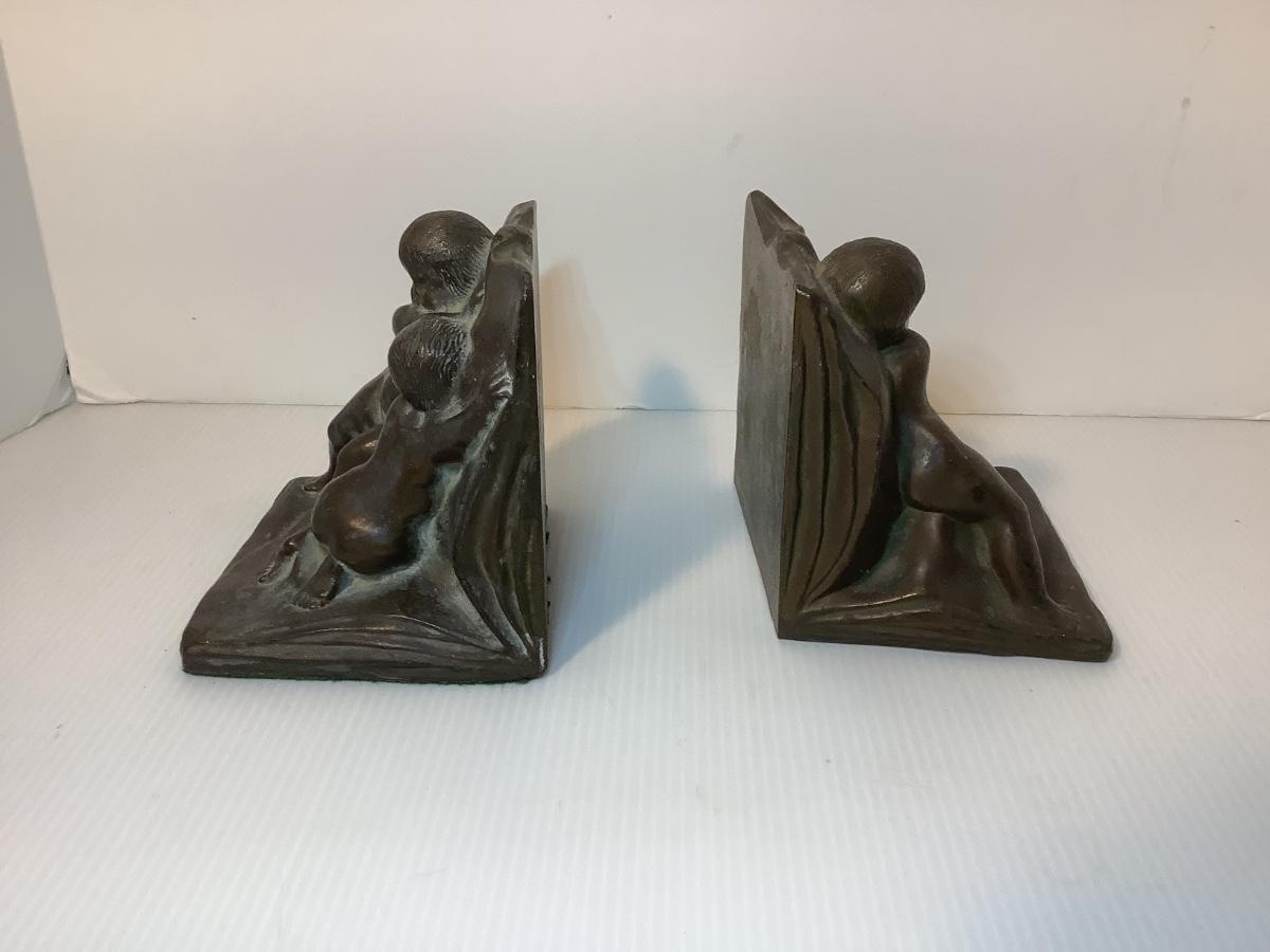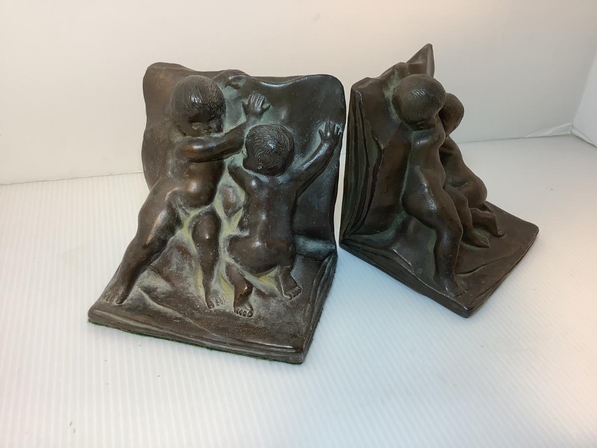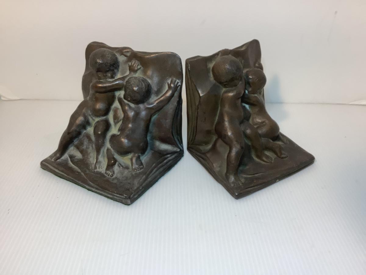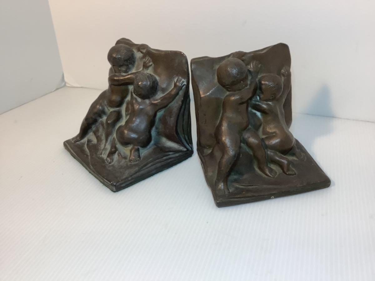 221  Antique Bronze “ Children “ Bookends, Galvano Bronze, P. Mori & Son 1900-1940