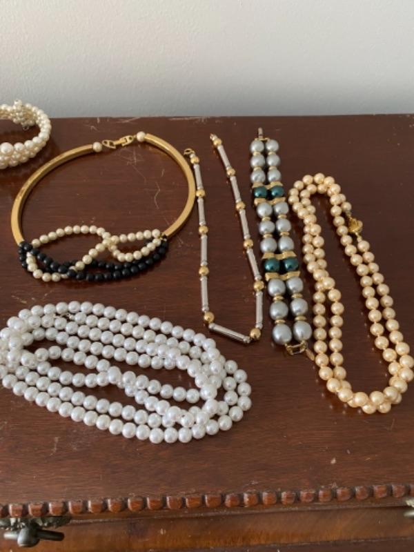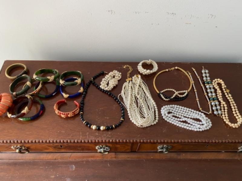 Costume Jewelry Lot faux pearl necklaces and slip on bangles