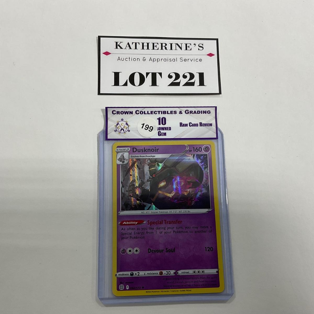 One Crown Collectibles Raw Review Dusknoir Mint 10. Please see photos for details and condition. ::: Shipping is available on this lot. If you require shipping you must let us know at the close of the auction. We will coordinate with you after the item has been won. Shipping fees will include insurance up to or exceeding the value of all items being mailed. If you have any questions regarding this lot please contact the auctioneer either via this website, by direct email or by phone. PICK UP TIMES and other important information can be found in the TERMS and DESCRIPTION of the auction. Please take a look for pertinent information. Thanks!