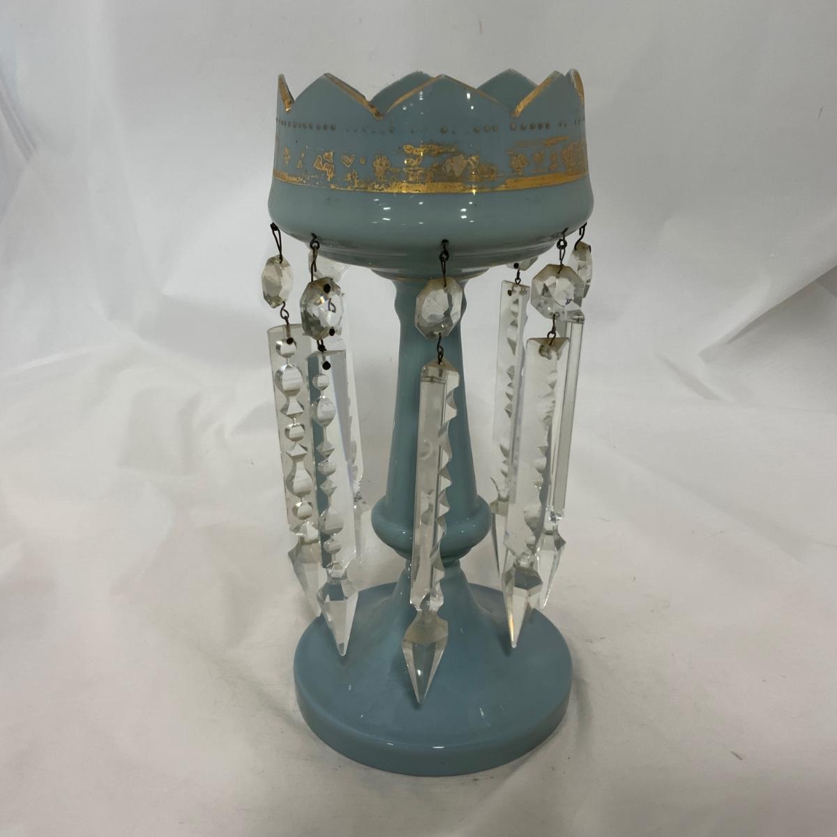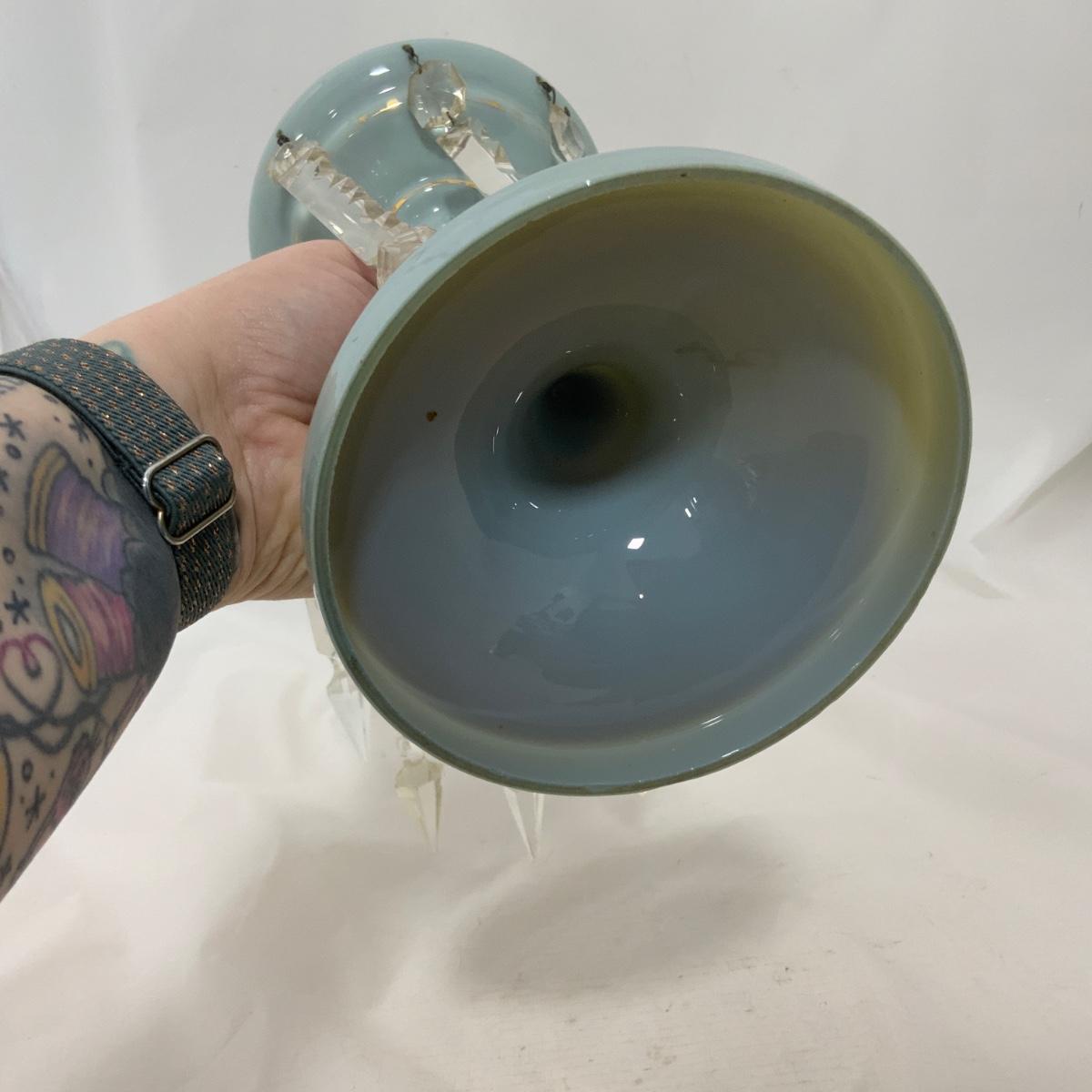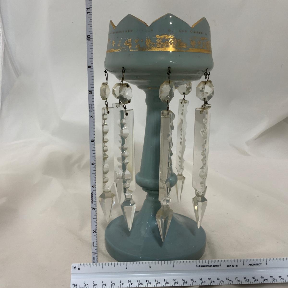 Absolutely stunning Smoky Blue and Gold gilded Bristol Firefly Lustre Candle Holder with Crystal Drops. Just incredible. It’s in exceptional antique condition. Please see photos for details and condition. ::: Shipping is available on this lot. If you require shipping you must let us know at the close of the auction. We will coordinate with you after the item has been won. Shipping fees will include insurance up to or exceeding the value of all items being mailed. If you have any questions regarding this lot please contact the auctioneer either via this website, by direct email or by phone. PICK UP TIMES and other important information can be found in the TERMS and DESCRIPTION of the auction. Please take a look for pertinent information. Thanks!