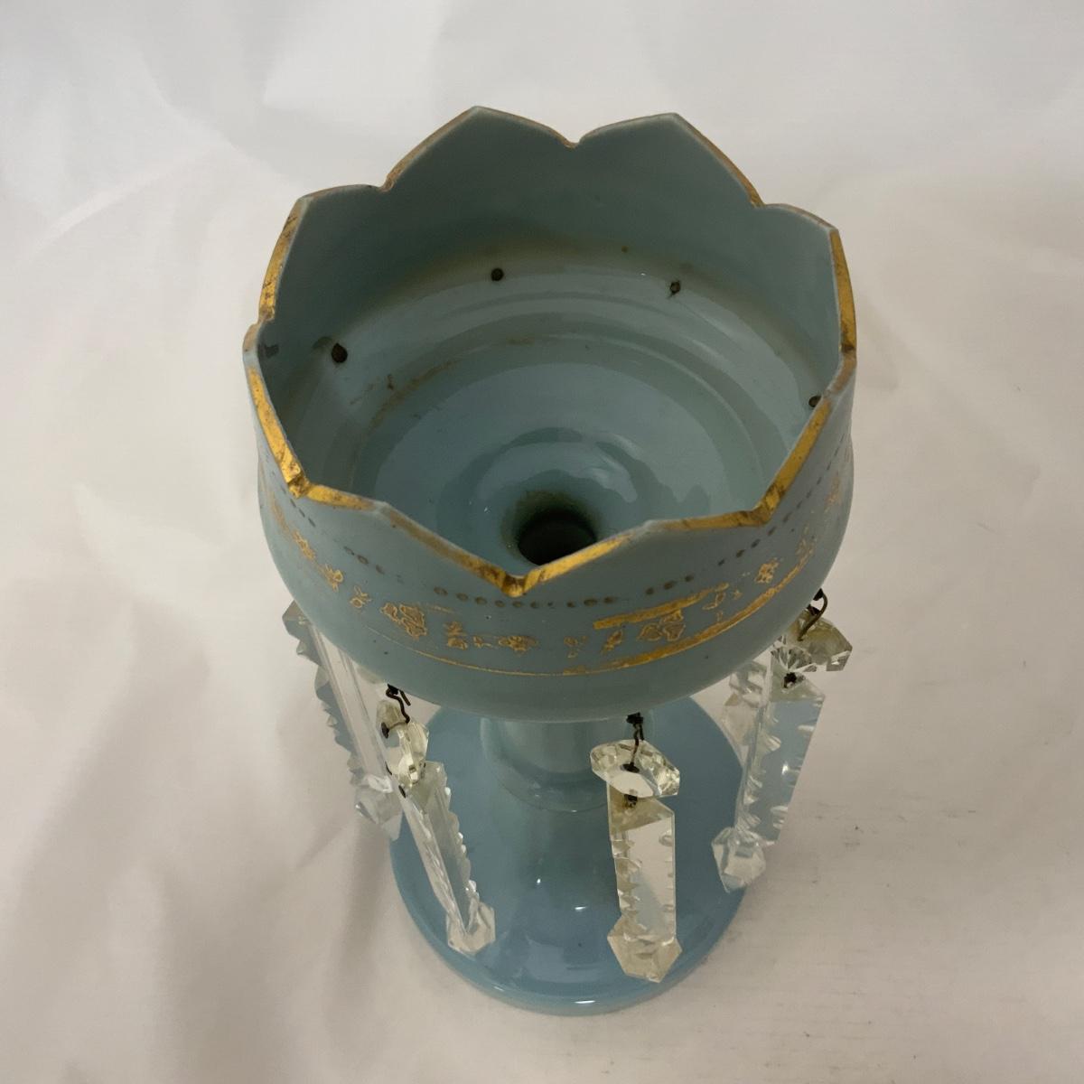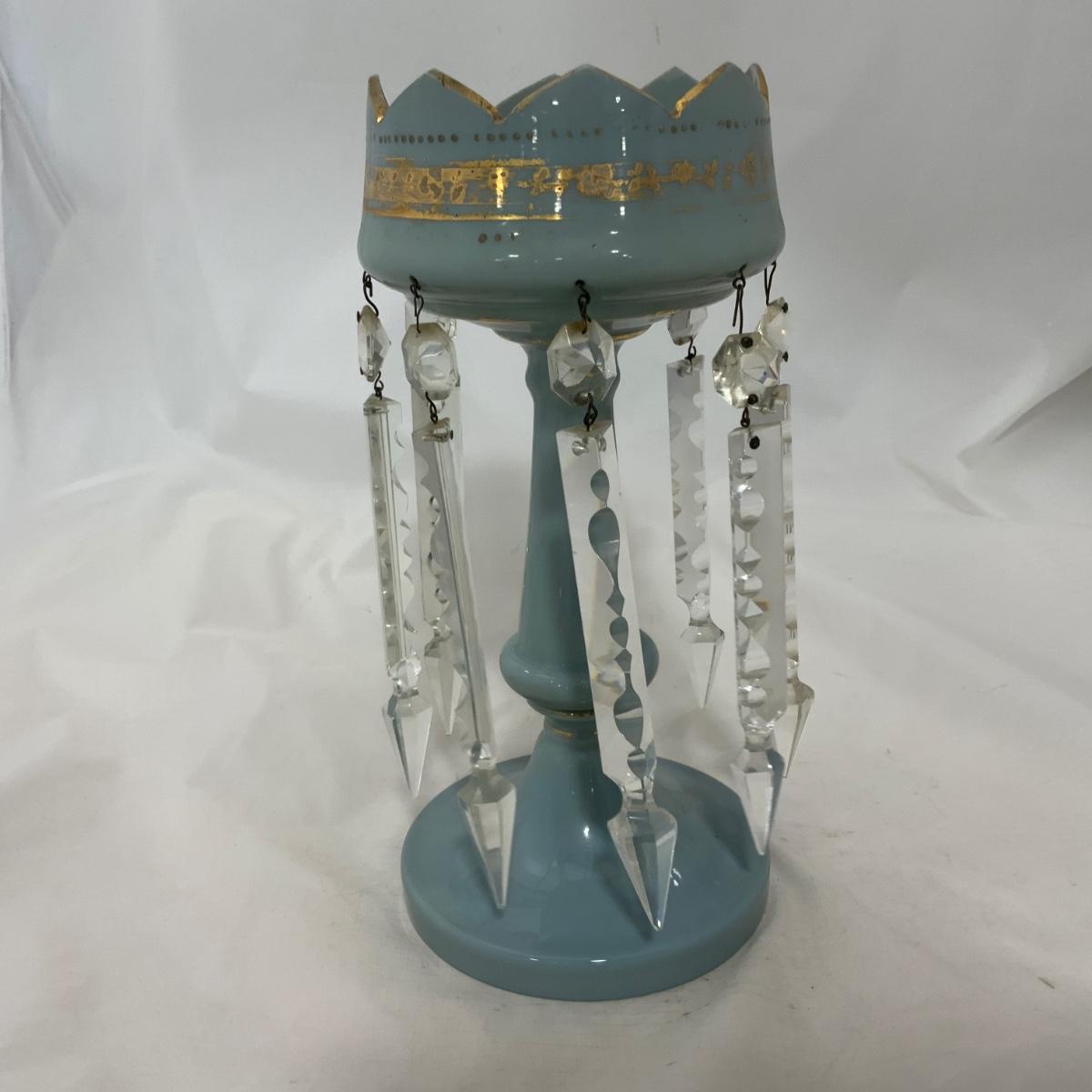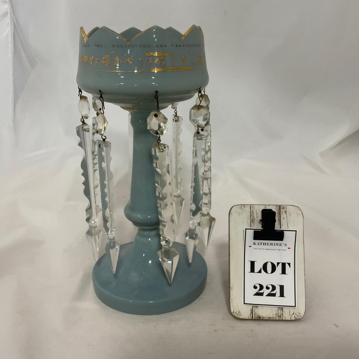 Absolutely stunning Smoky Blue and Gold gilded Bristol Firefly Lustre Candle Holder with Crystal Drops. Just incredible. It’s in exceptional antique condition. Please see photos for details and condition. ::: Shipping is available on this lot. If you require shipping you must let us know at the close of the auction. We will coordinate with you after the item has been won. Shipping fees will include insurance up to or exceeding the value of all items being mailed. If you have any questions regarding this lot please contact the auctioneer either via this website, by direct email or by phone. PICK UP TIMES and other important information can be found in the TERMS and DESCRIPTION of the auction. Please take a look for pertinent information. Thanks!