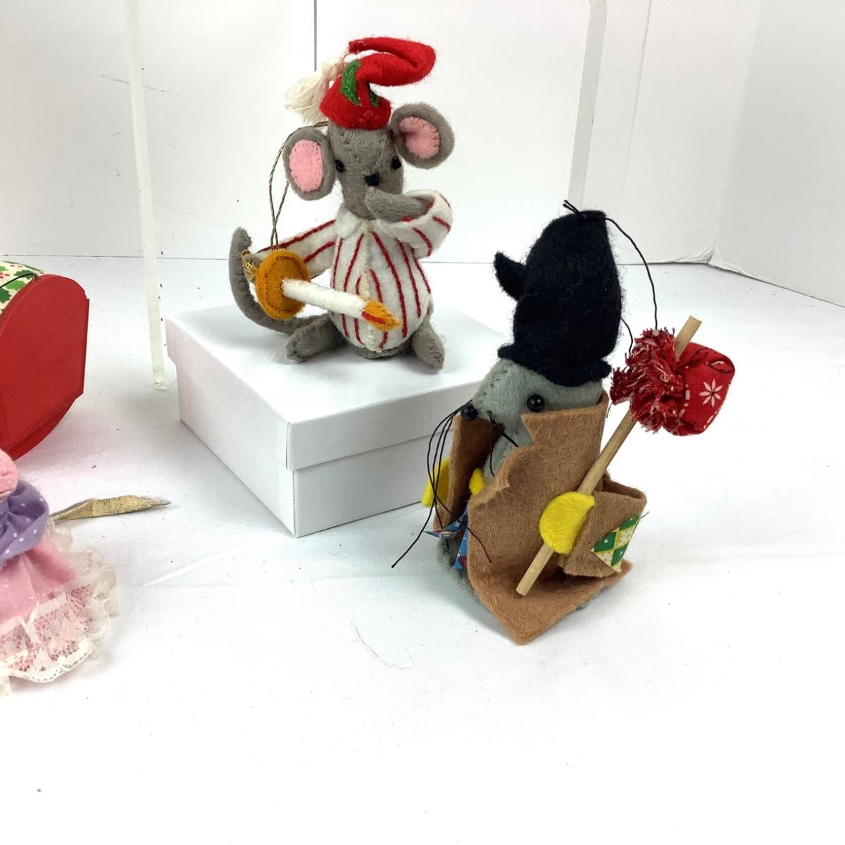 The lot contains 11 different mice ornaments 2"-3" tall.