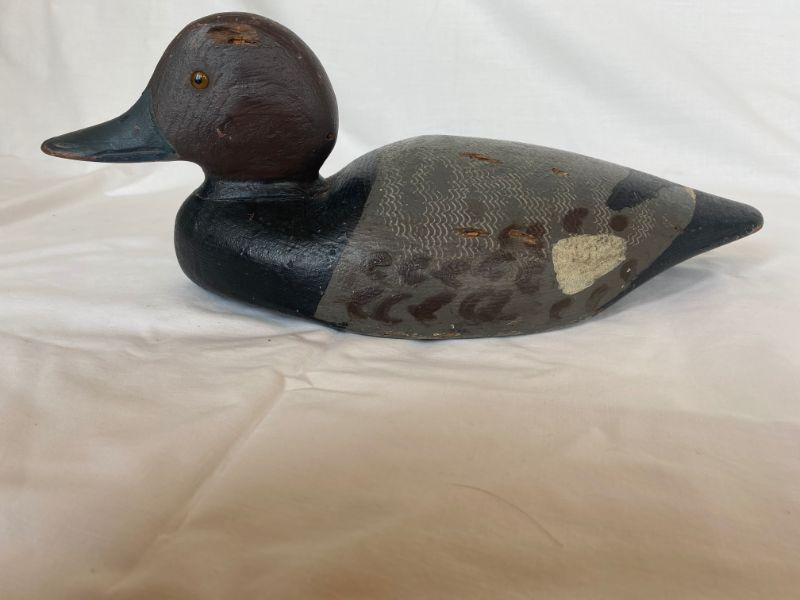 Vintage Canvasback Wooden Carved Decoy with weight. No makers name and weight on bottom