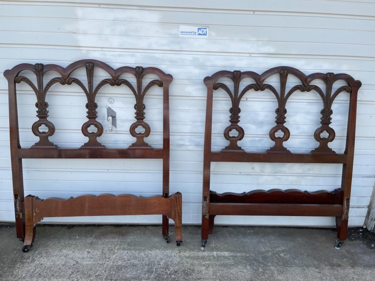 Beautifully carved mahogany twin beds with side rails. (Not pictured)