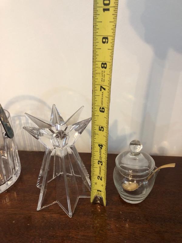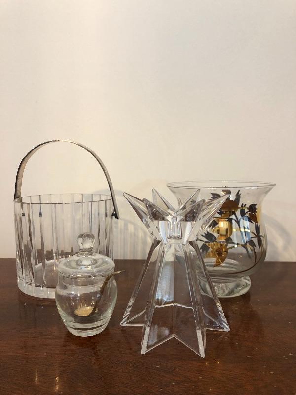 Finer Crystal Pieces. Ice Bucket, Star Pattern Candle Pillar, sugar Decanter and Italian hand Painted Vase/Bowl