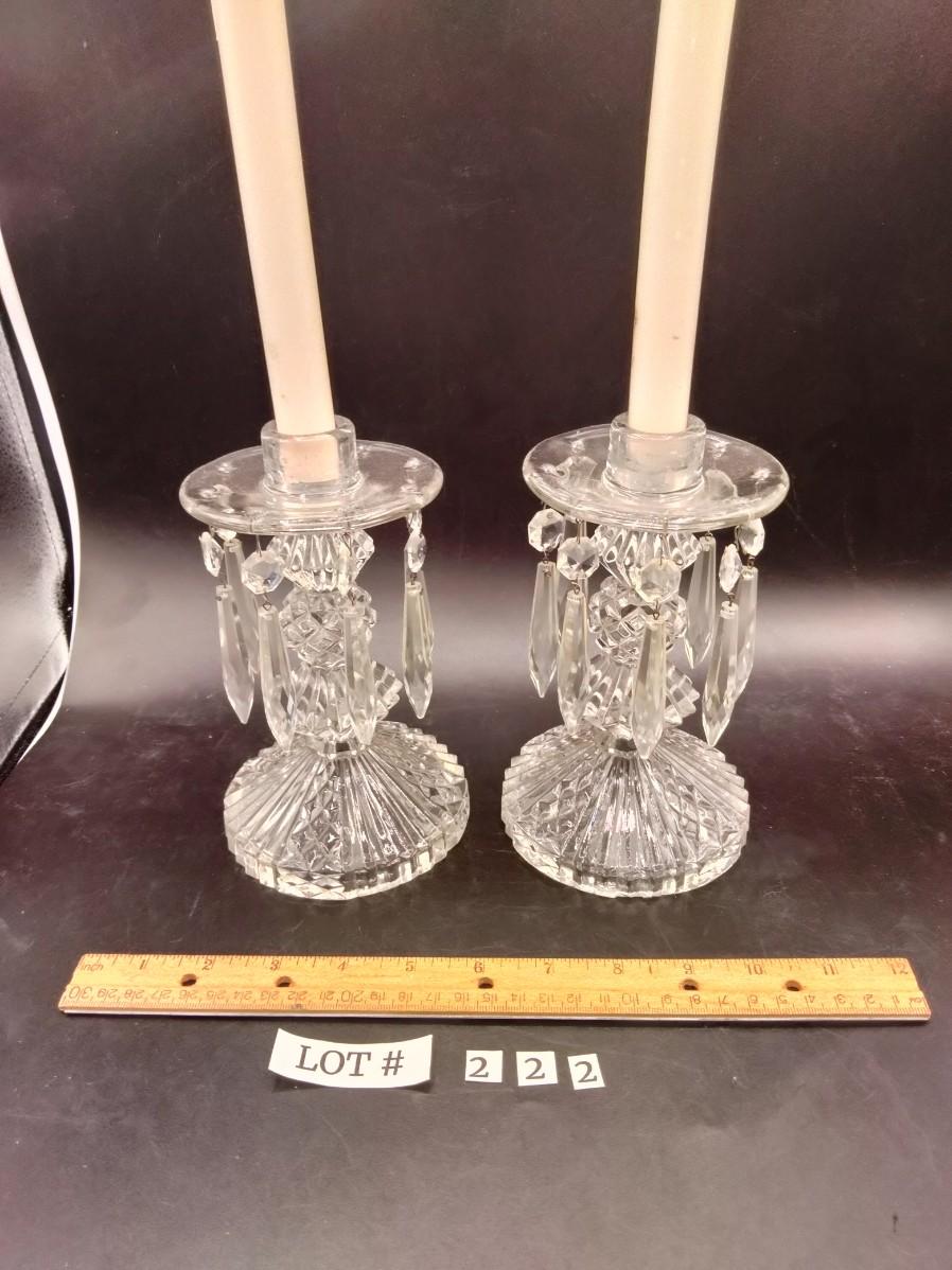 222 - Pair Vintage Glass Candlestick Holders