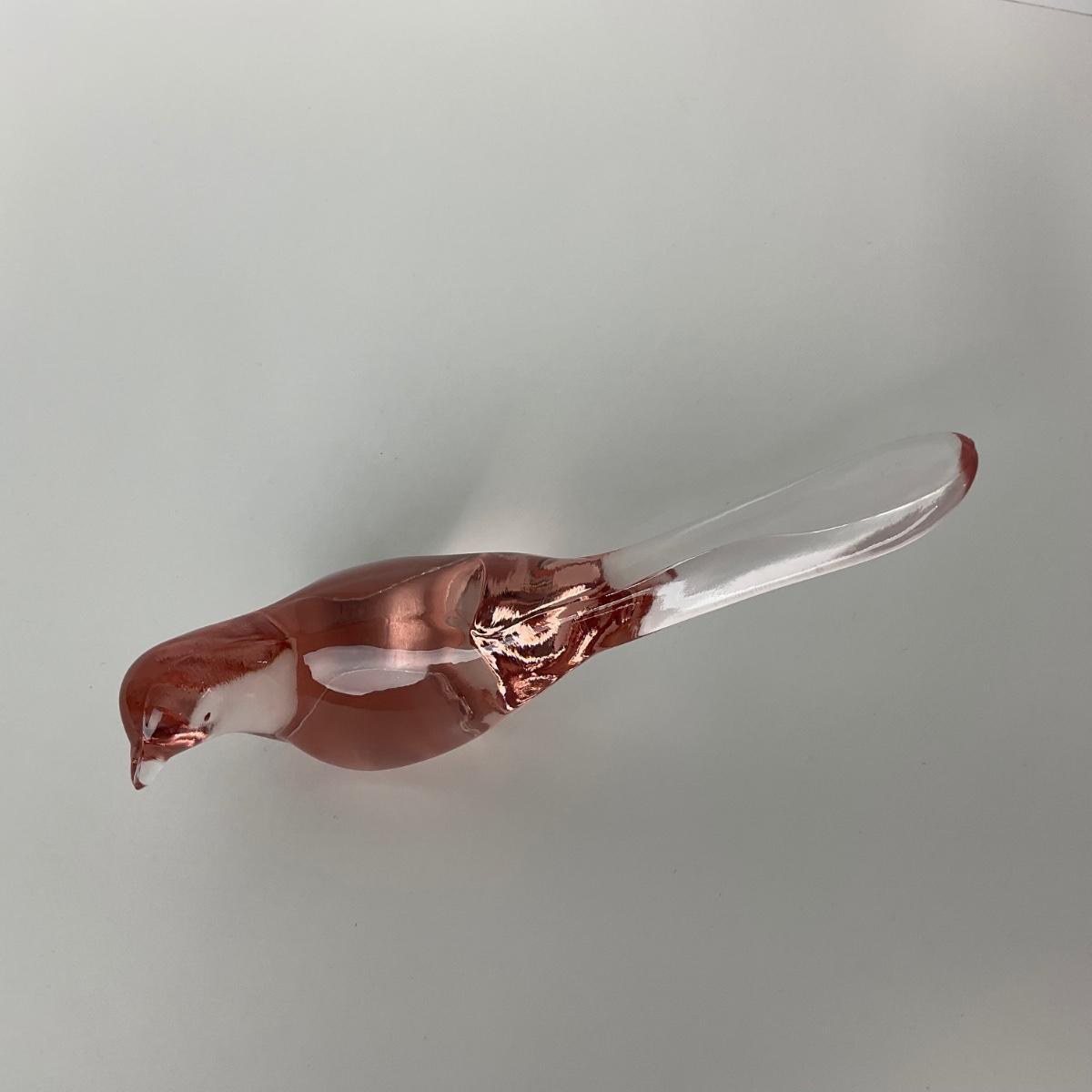 -222- FENTON | light Pink Happiness Bird Long Tail | Marked