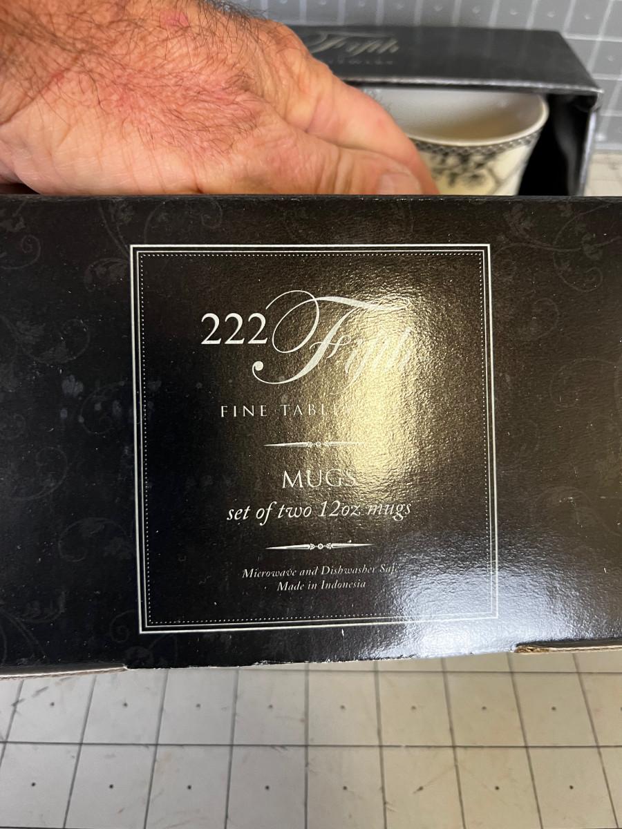 222 FIFTH Fine Table ware Coffee Mugs 2 Boxes or 2 each.  NEW
