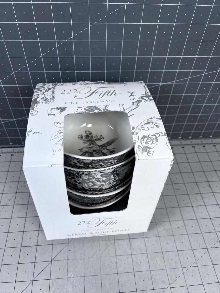 222 Fifth Square Cereal or Soup Bowls (4) NEW in the BOX