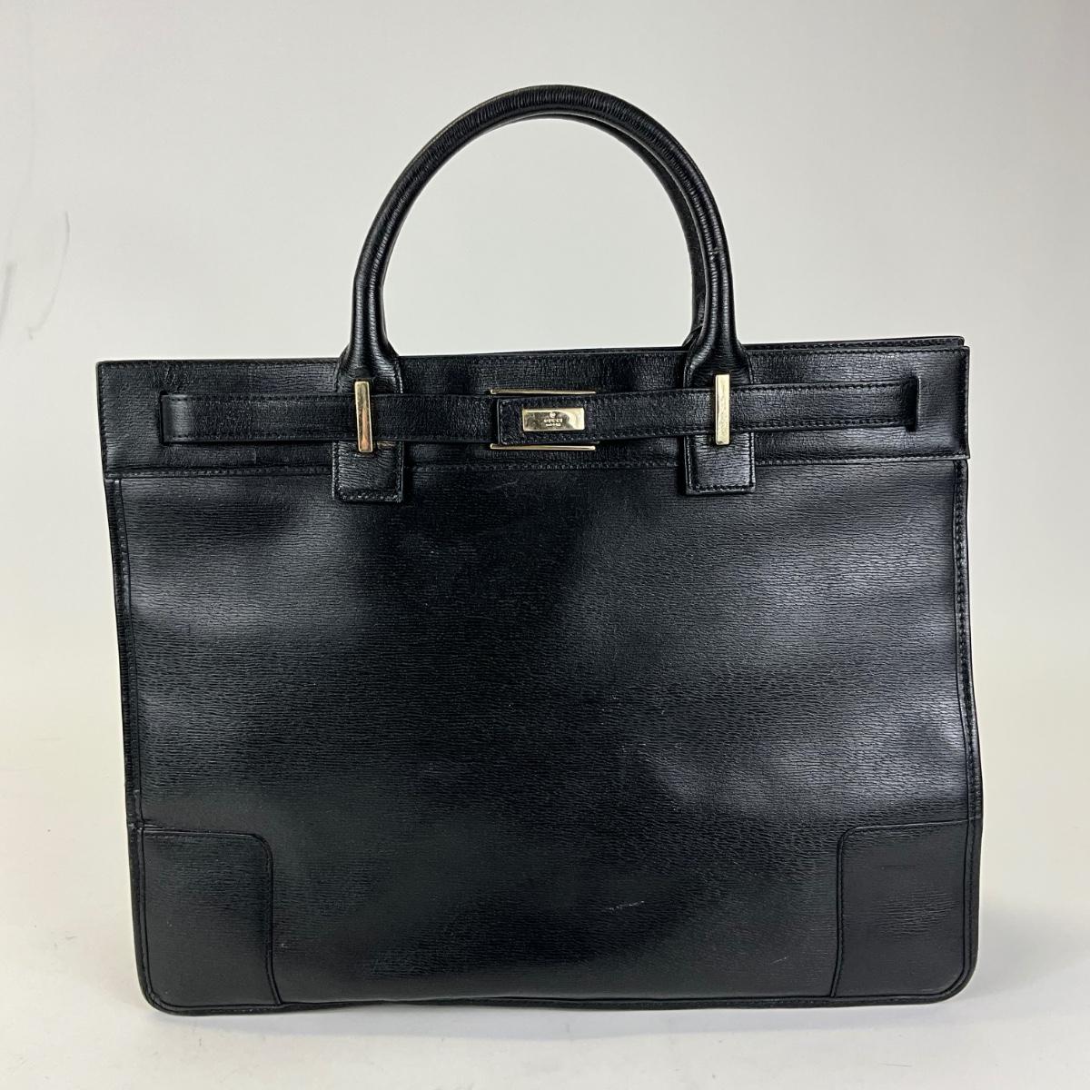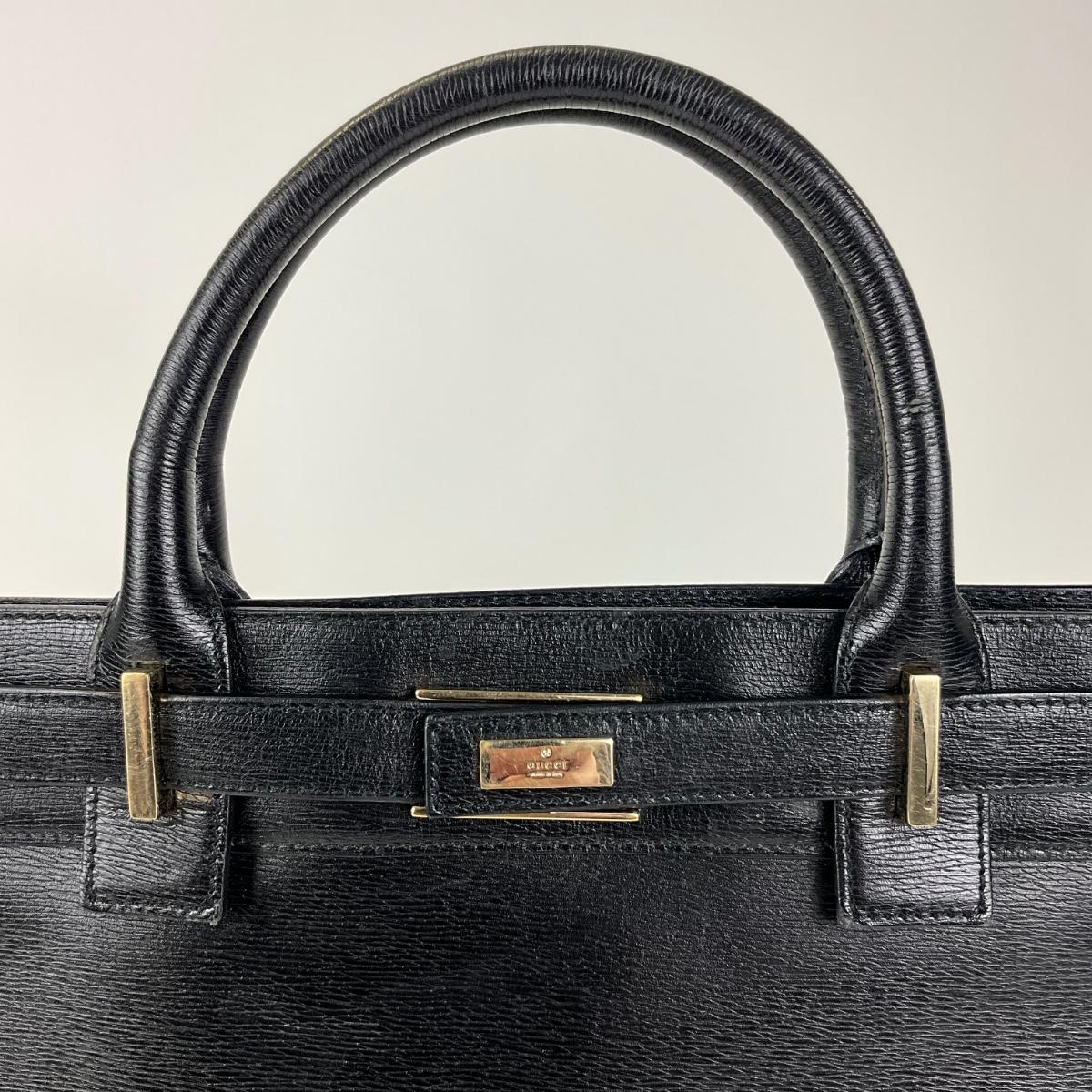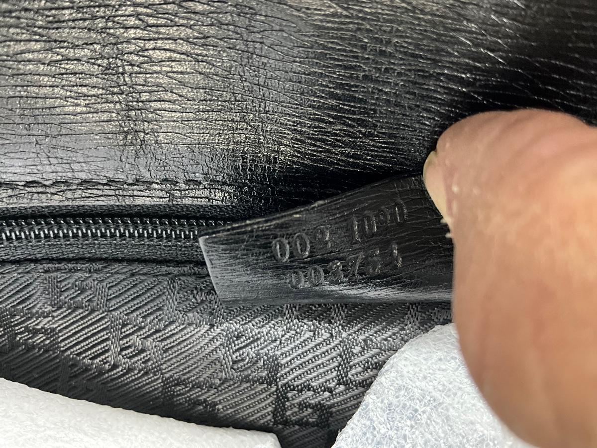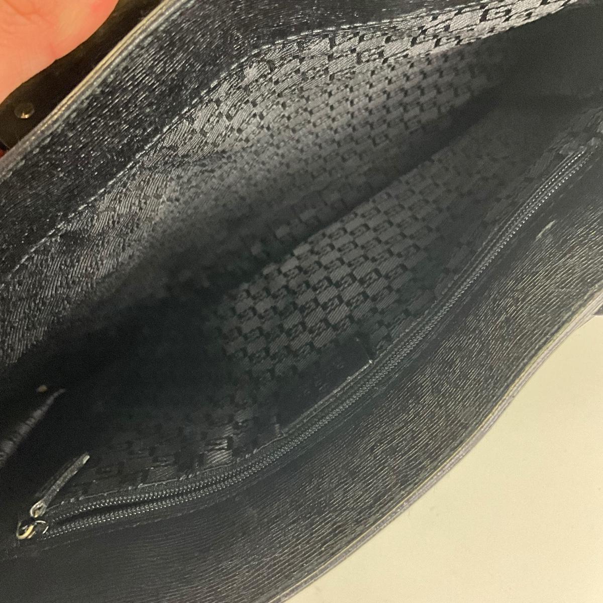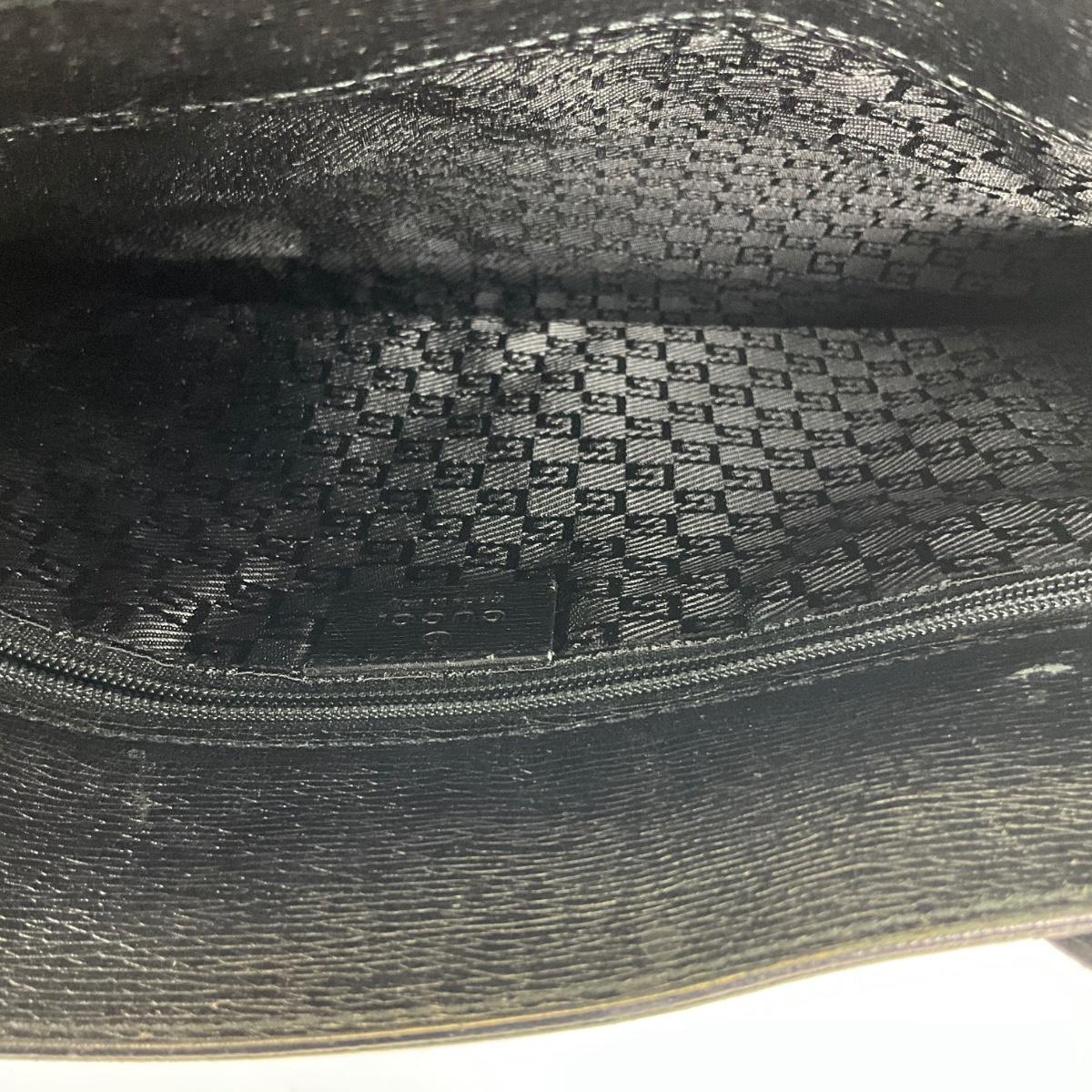 Used black leather with gold tone metal details and includes dust bag. Interior is gucci monogram.