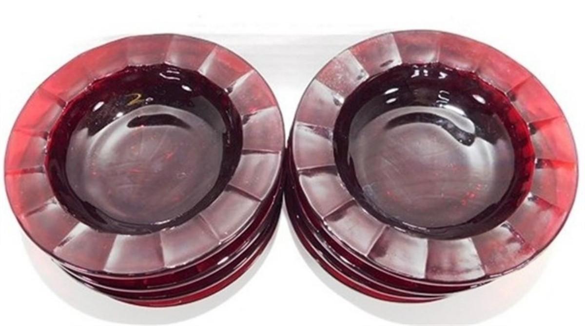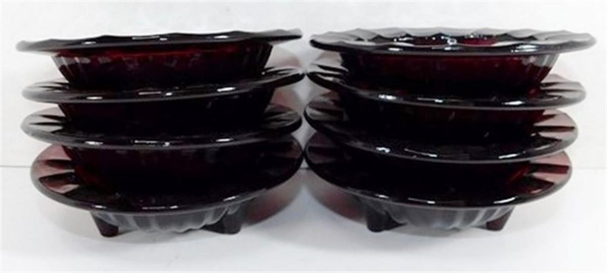 222 Lot of 8 Anchor Hocking Royal Ruby Red Fluted Scalloped Footed Bowls/ Ashtrays 4 x 1