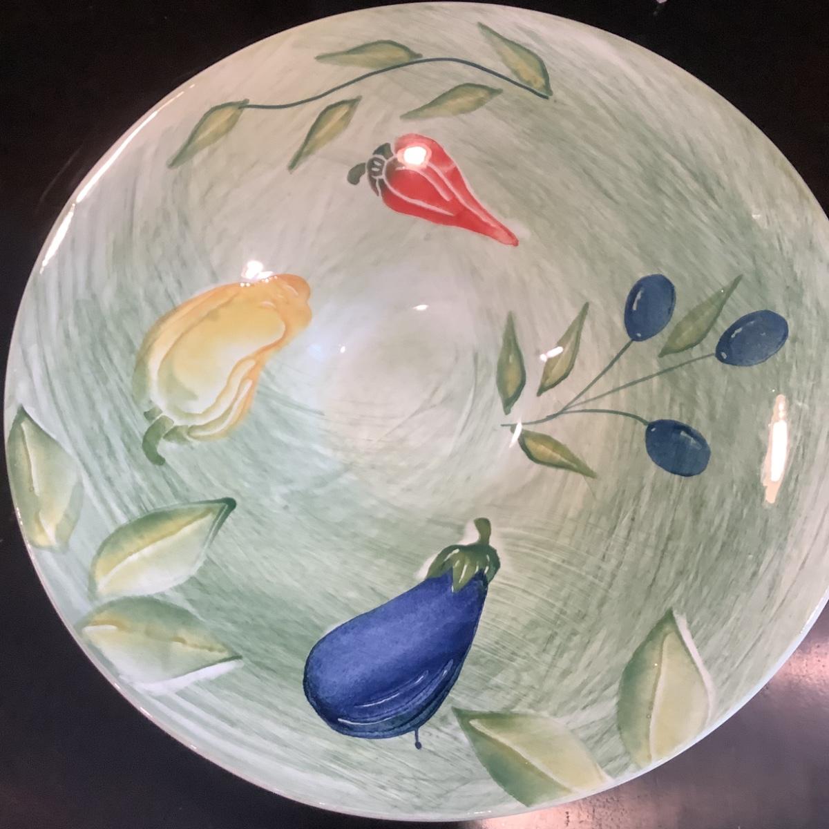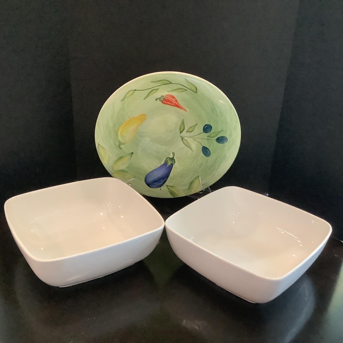 222 Two Large Square Porcelain Serving Bowls with round Fruit Bowl Caramiche