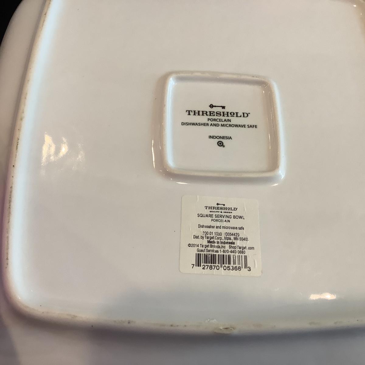 Serving bowls are by Threshold and measure 12" square x 5" deep