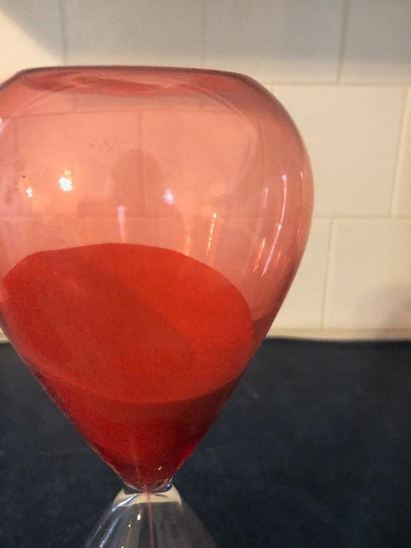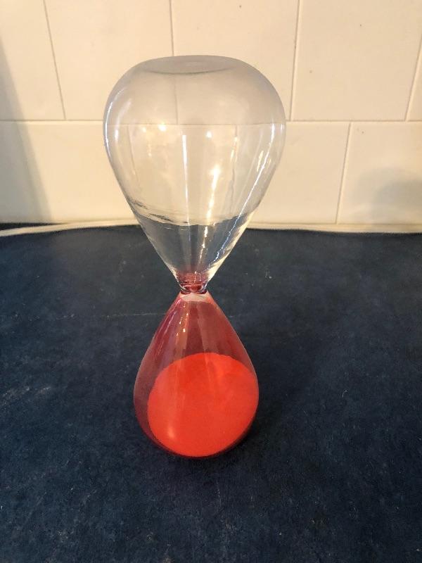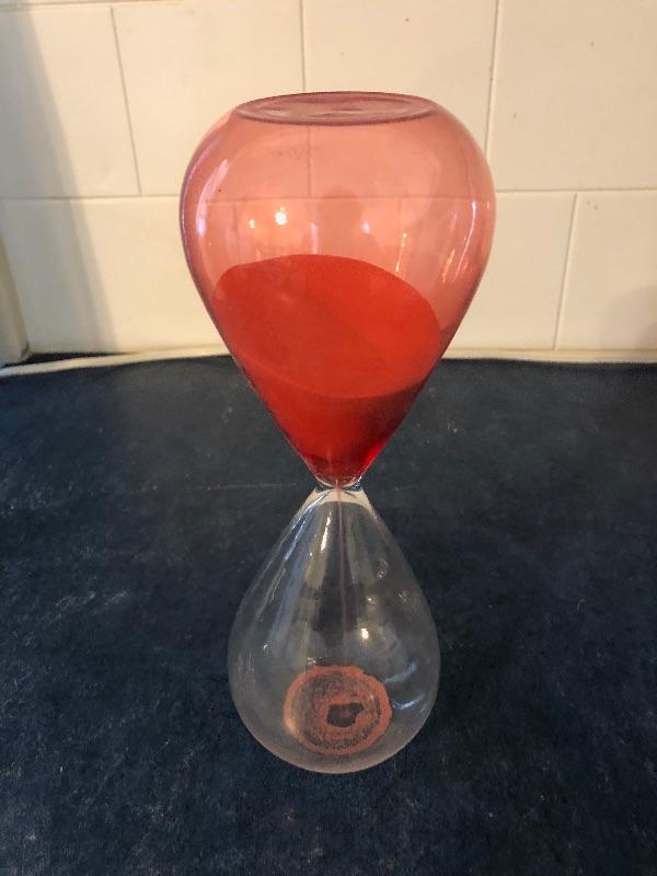 half clear glass half red glass red sand. Great condition. This is an ONSITE Auction all items will need to be picked up on location. Please see auction description for pick up procedures.