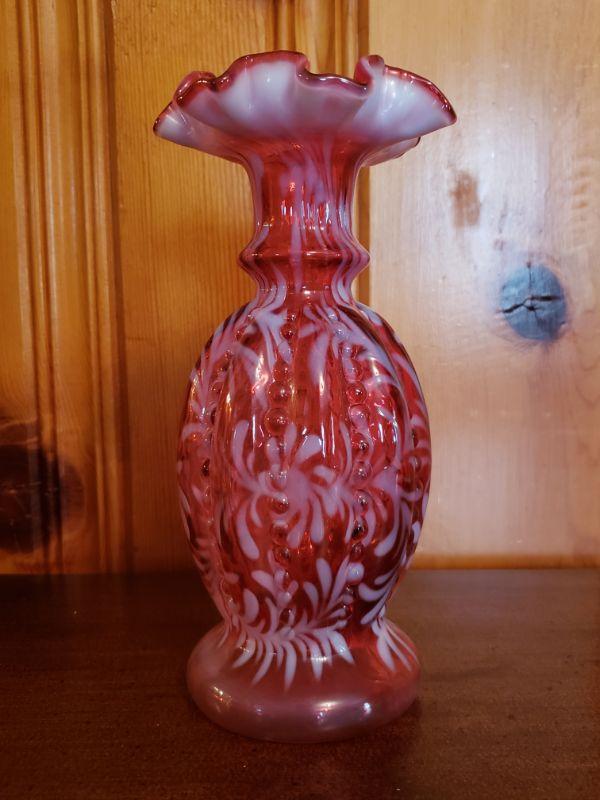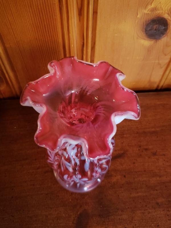 2-220: Fenton (Pink and White) Ruffle Rim Vase