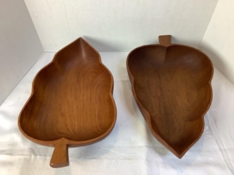 2220 Pair of Wood Leaf Shaped Bowls