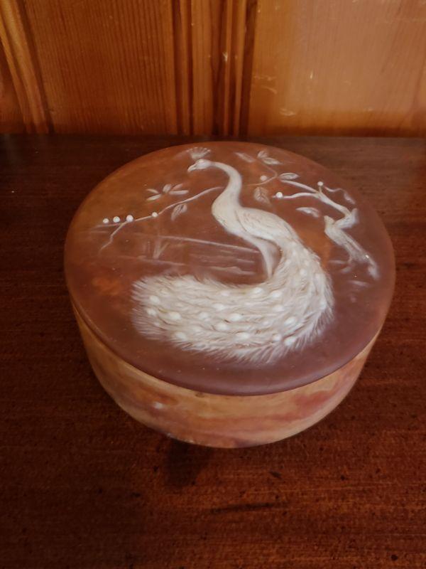 2-221: Vintage Soapstone Peacock Box