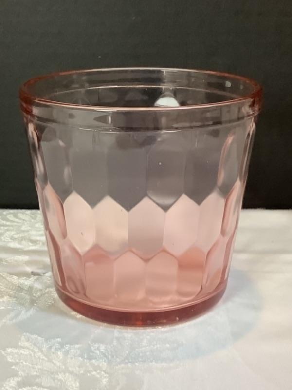 2221 Vintage Pink Pressed Glass Ice Bucket Glass Vase Cut Crystal
