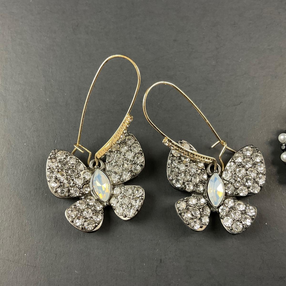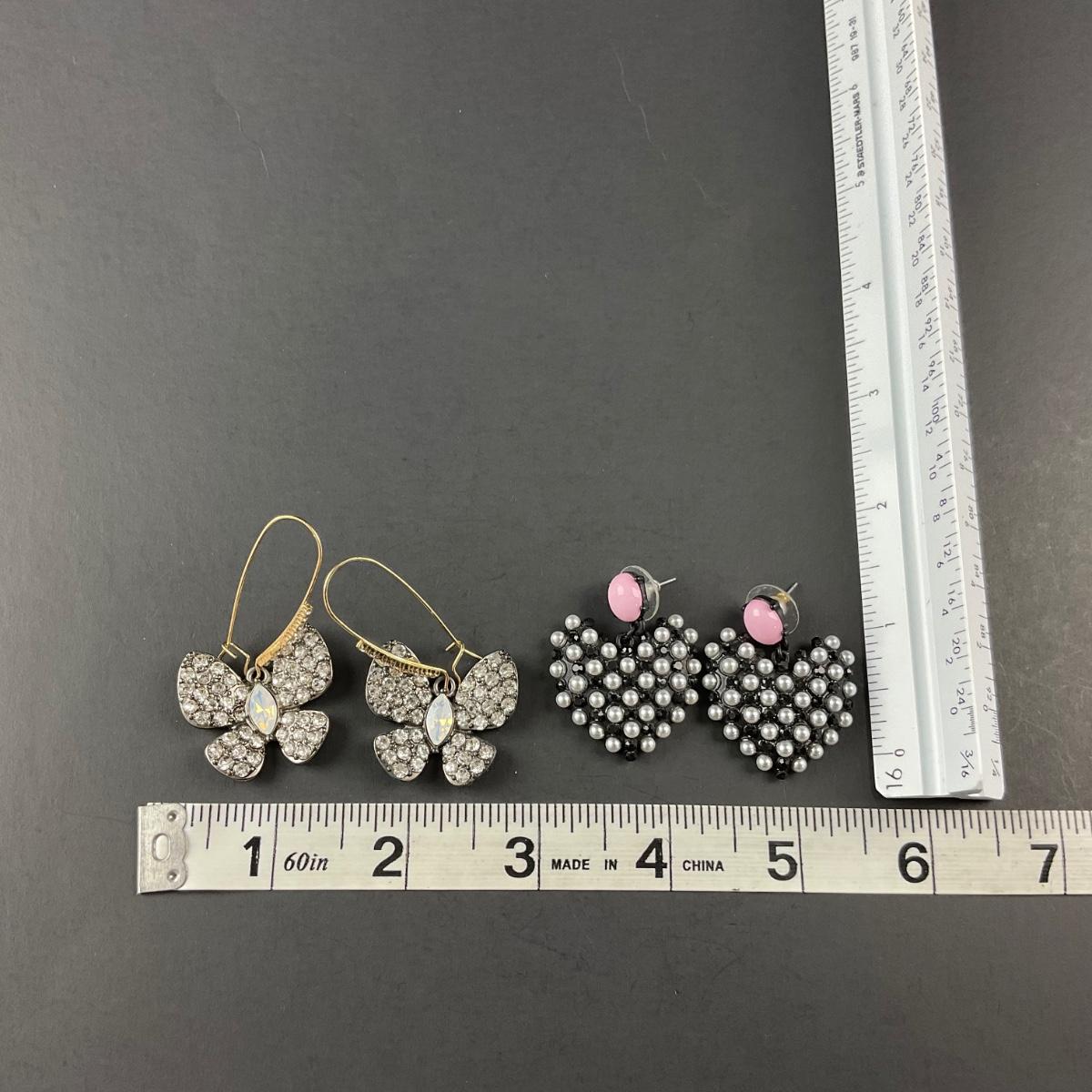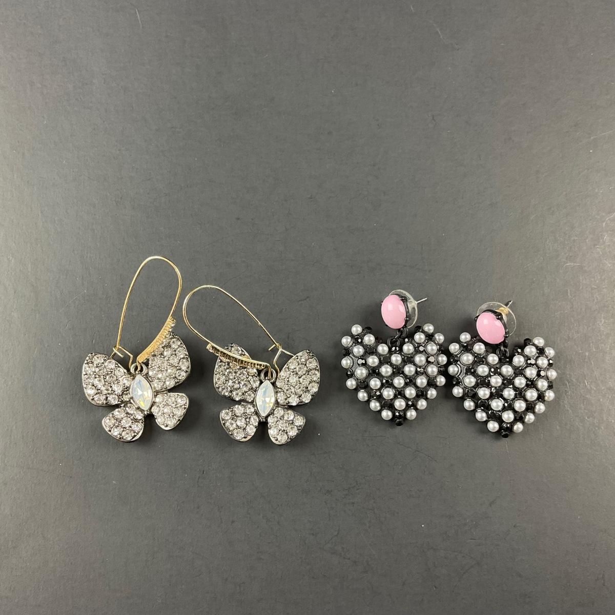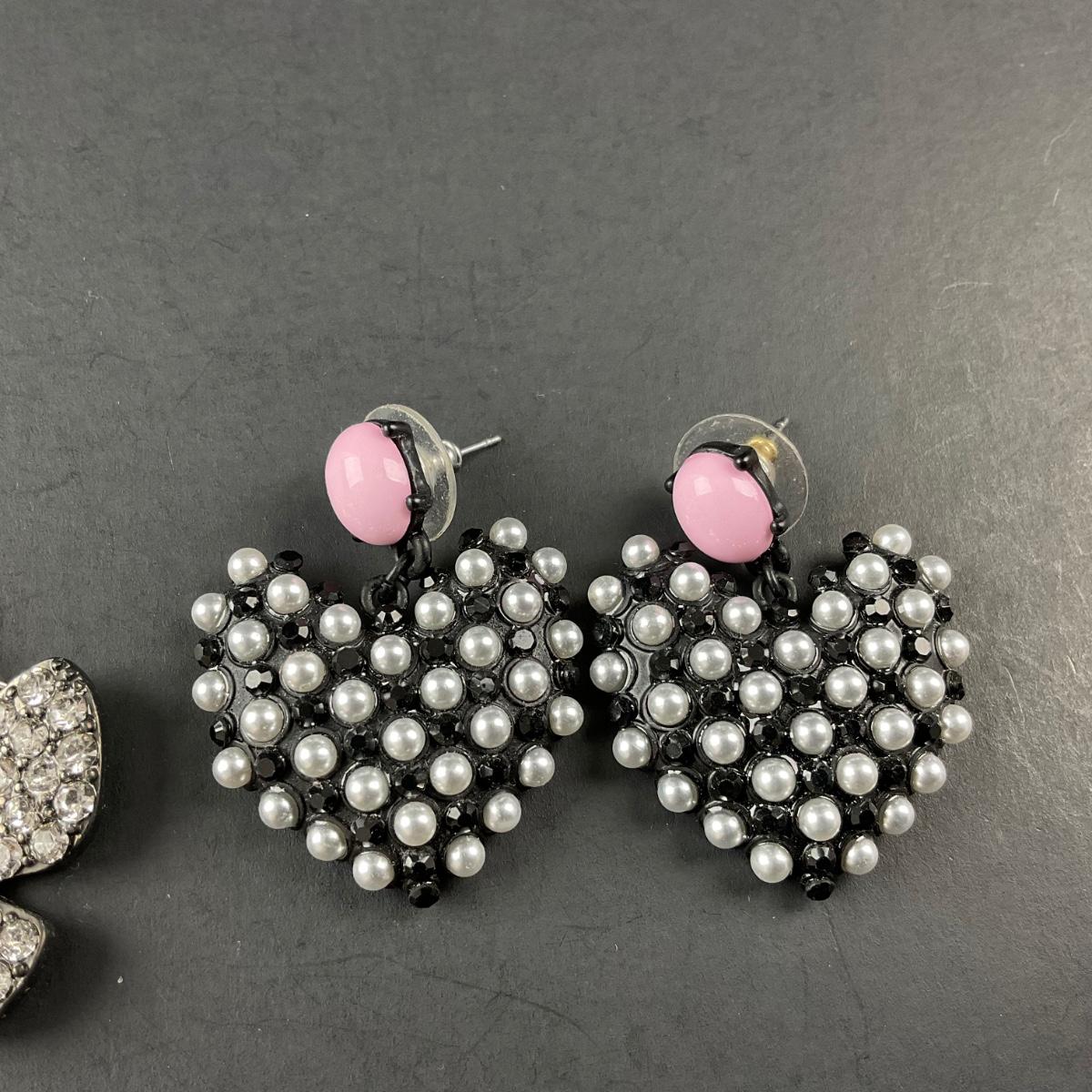 Two pair of Betsy Johnson earrings. This piece has no damage, and appears to be in great shape with no visable chips, cracks, or broken pieces. Please see photos for details and condition. Any condition statement is given as a courtesy to a client, is an opinion, and should not be treated as a statement of fact. Reference to condition written, oral or within a condition report shall not be regarded as a full account of condition and may not include all defects, alterations, or restorations. Absence of a condition report does not imply a lot is flawless or lacking imperfections or damage. Katherine’s Auction & Appraisal Service shall have no responsibility for any error or omission. Returns shall not be accepted on the basis of condition. ::: Shipping is available on this lot. If you require shipping you must let us know at the close of the auction. We will coordinate with you after the item has been won. Shipping fees will include insurance up to or exceeding the value of all items being mailed. If you have any questions regarding this lot please contact the auctioneer either via this website, by direct email or by phone. PICK UP TIMES and other important information can be found in the TERMS and DESCRIPTION of the auction. Please take a look for pertinent information. Thanks!