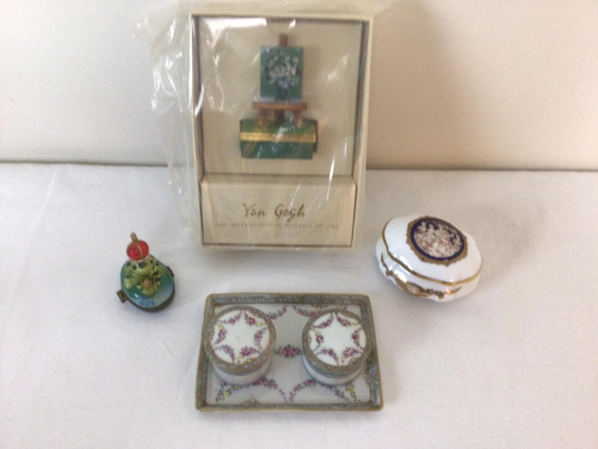 Van Gogh trinket box is brand new in all original packaging, lot also includes Limoges box and a Prince box with ceramic heart inside.