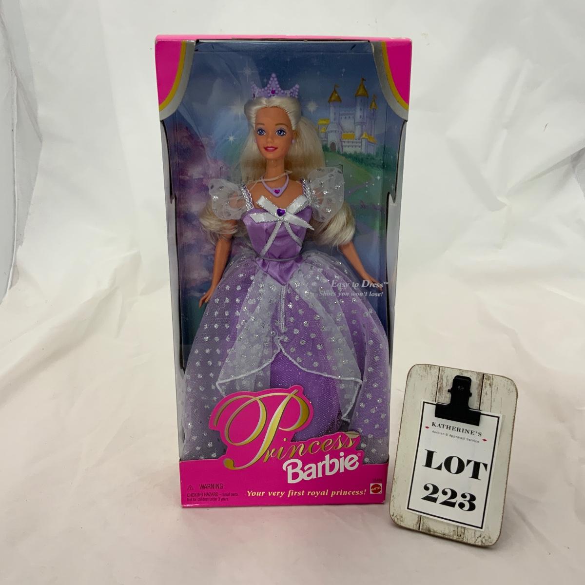 Princess Barbie - Your very first Royal Princess. She is easy to dress, and her shoes are attached to her feet. Doll was released in 1997 by Mattel, and is new, in box. Please see photos for details and condition. !!! Proceeds from this auction will be donated to the NEW COMMUNITY SHELTER in Green Bay, Wisconsin. Please see Sale Description to the Left for more information. !!! ::: Shipping is available on this lot. If you require shipping you must let us know at the close of the auction. We will coordinate with you after the item has been won. Shipping fees will include insurance up to or exceeding the value of all items being mailed. If you have any questions regarding this lot please contact the auctioneer either via this website, by direct email or by phone. PICK UP TIMES and other important information can be found in the TERMS and DESCRIPTION of the auction. Please take a look for pertinent information. Thanks!