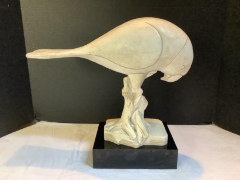 Vintage 1980”s Austin Productions Parrot On A Branch sculpture measures 14” tall, has been repaired on the leg (see photos)