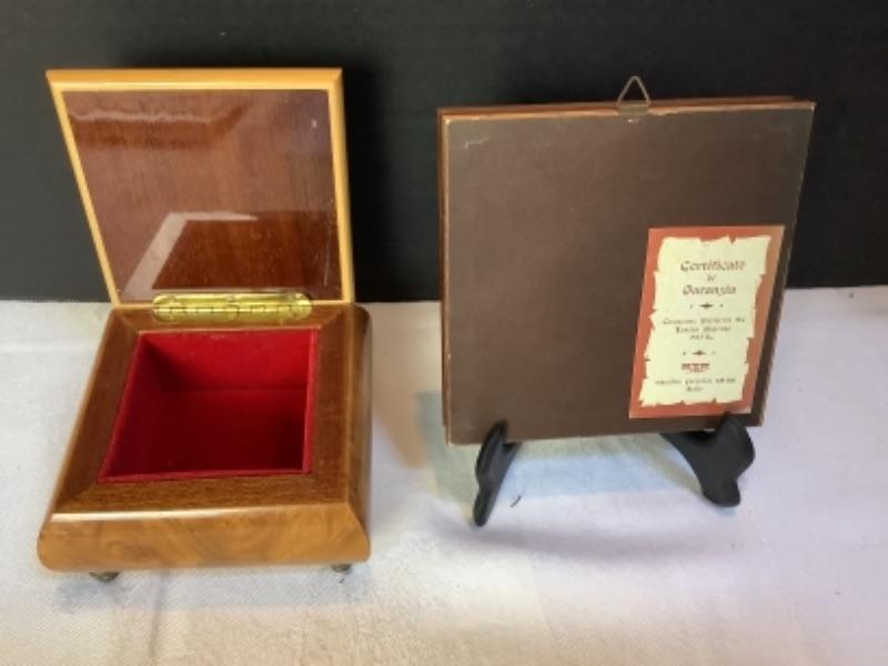 2239 Vintage Lastro Argento Sterling Portrait Howard Miller Clock Linden Clock Enamel Flower Wooden Trinket Box