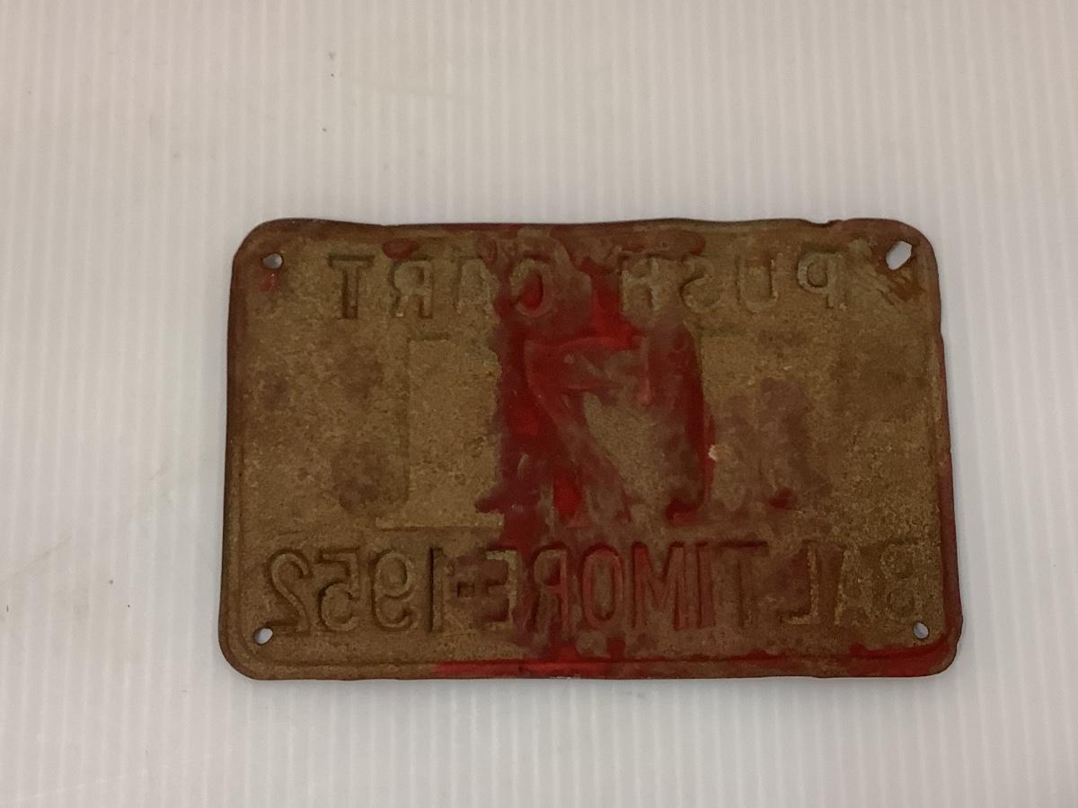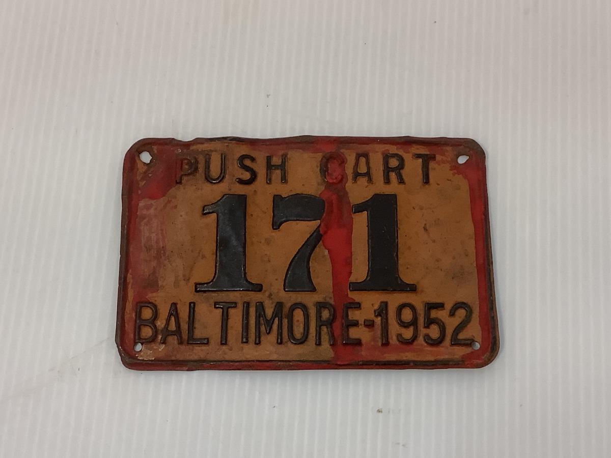 Antique Push Cart Plate “ 171 Baltimore-1952 “