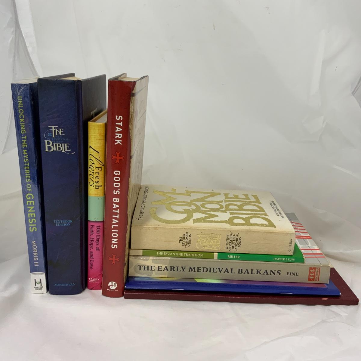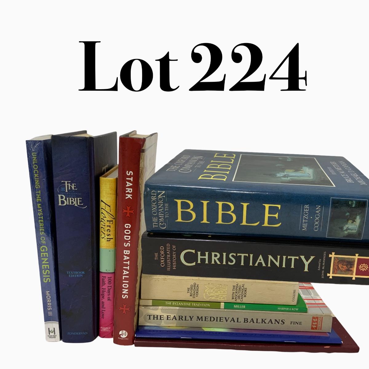 From the Estate of Peter and Alice Radovanovich: Nine books including Bibles and books about Christianity. Books included are: Women of the Bible | Feasts of Christ and the Theotokos and Miracles of the Lord | The Early Medieval Balkans | The Byzantine Tradition by D.A. Miller | The Common Bible | Unlocking the mysteries of Genesis by Henry M. Morris III (unopened) | The NIV Bible | Fresh Flowers for Women | God’s Battalion’s by Rodney Stark. Books are in good to excellent used condition. // Two Oxford Bible Reference Books. The Oxford Illustrated History of Christianity and The Oxford Companion to the Bible. Both are in excellent used condition. Please see photos for details and condition. ::: Shipping is available on this lot. If you require shipping you must let us know at the close of the auction. We will coordinate with you after the item has been won. Shipping fees will include insurance up to or exceeding the value of all items being mailed. If you have any questions regarding this lot please contact the auctioneer either via this website, by direct email or by phone. PICK UP TIMES and other important information can be found in the TERMS and DESCRIPTION of the auction. Please take a look for pertinent information. Thanks!