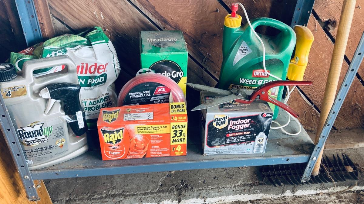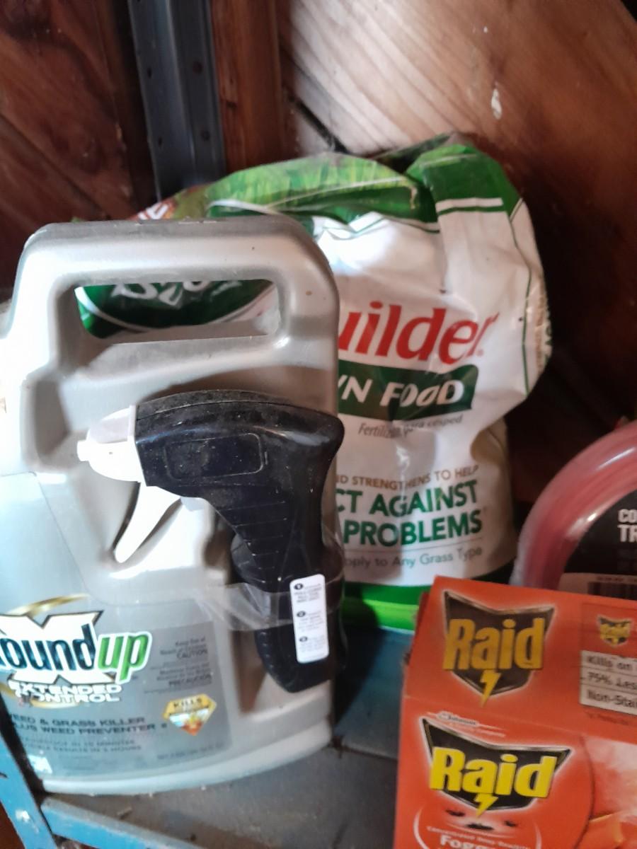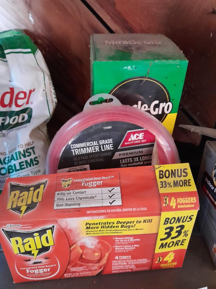 GARDEN CHEMICALS, WEED TRIMMER TWINE, AND HAND TOOL