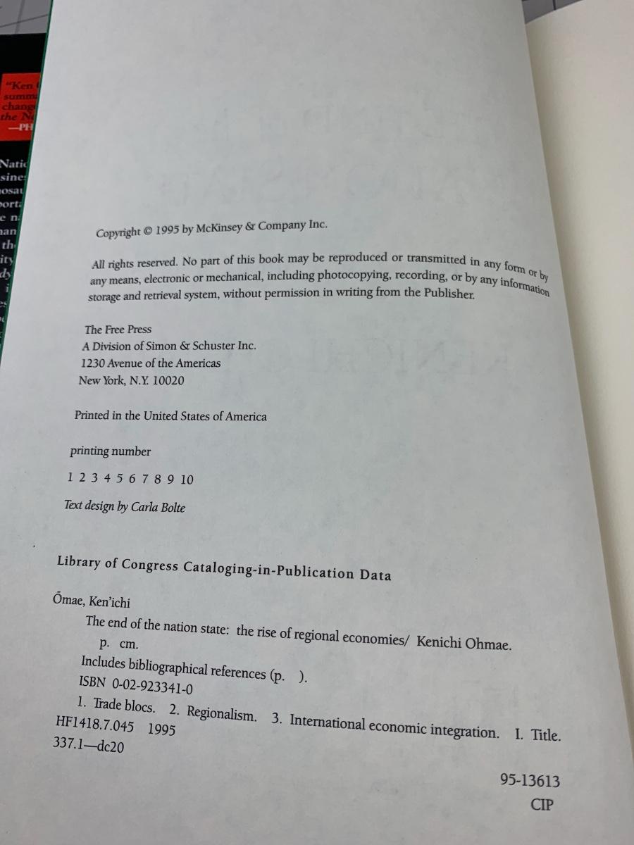 #224 The End of the Nation State by Kenichi Ohmae- Hardback Book