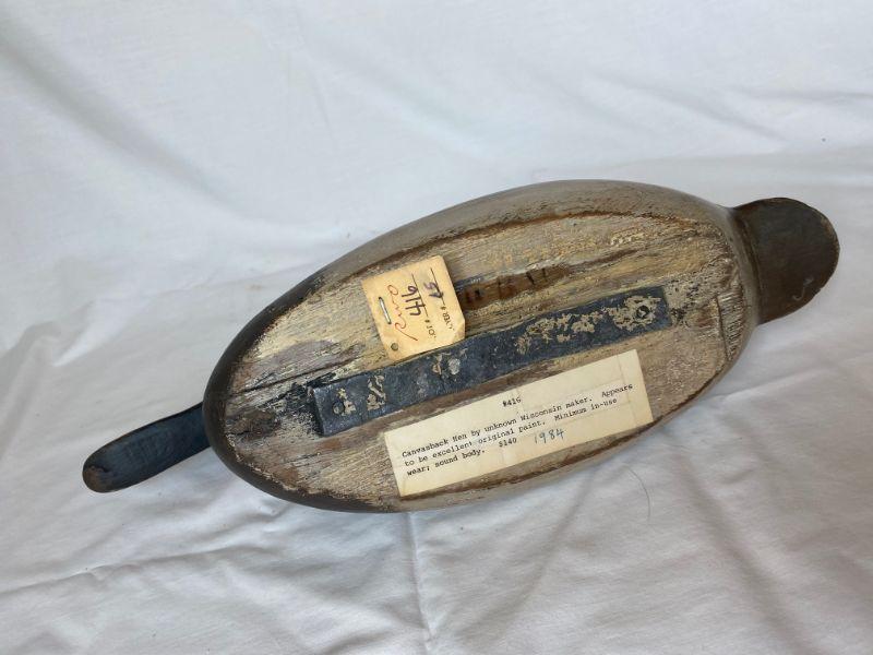 Antique Canvasback Hen by unknown Wisconsin maker with original paint 17.25" x 6'