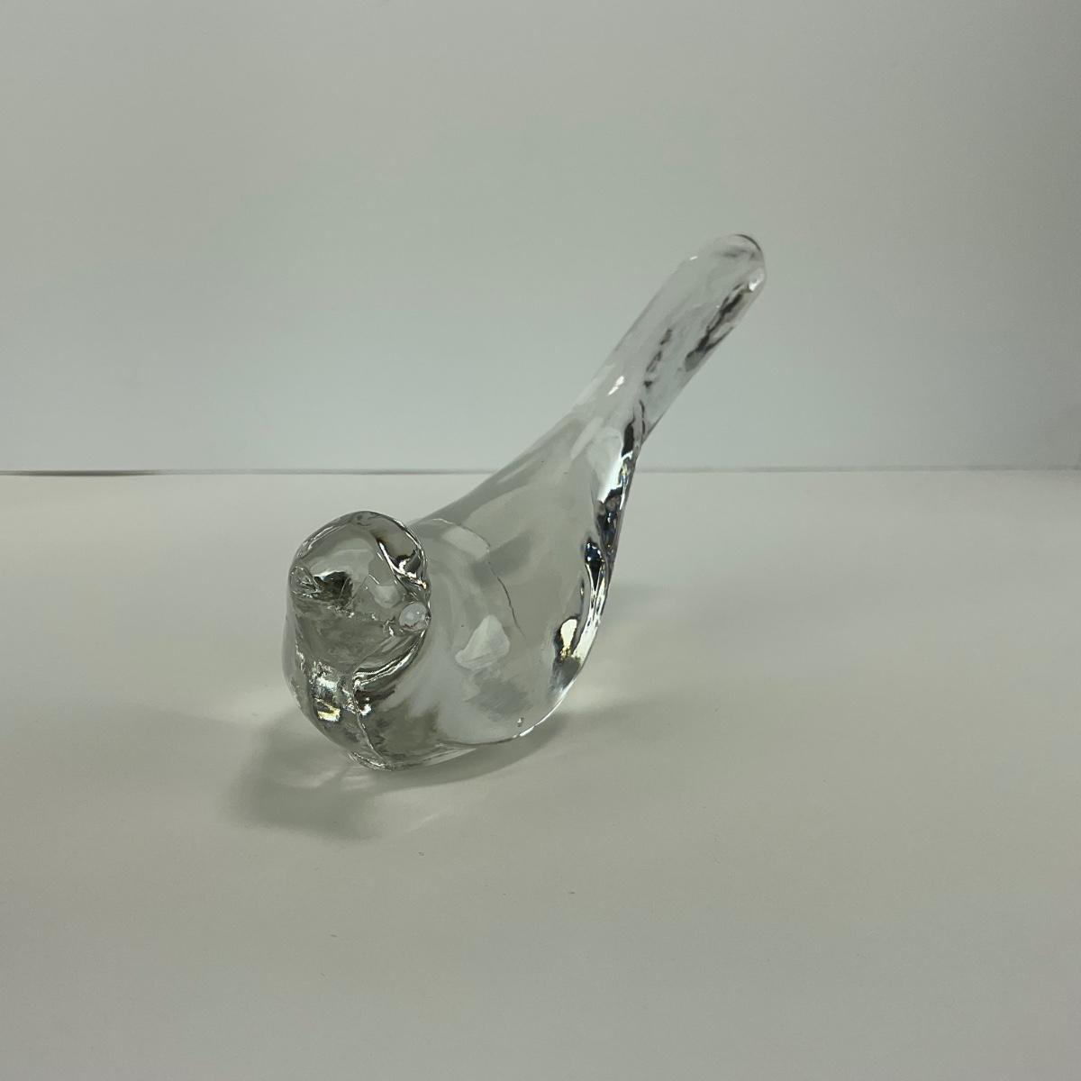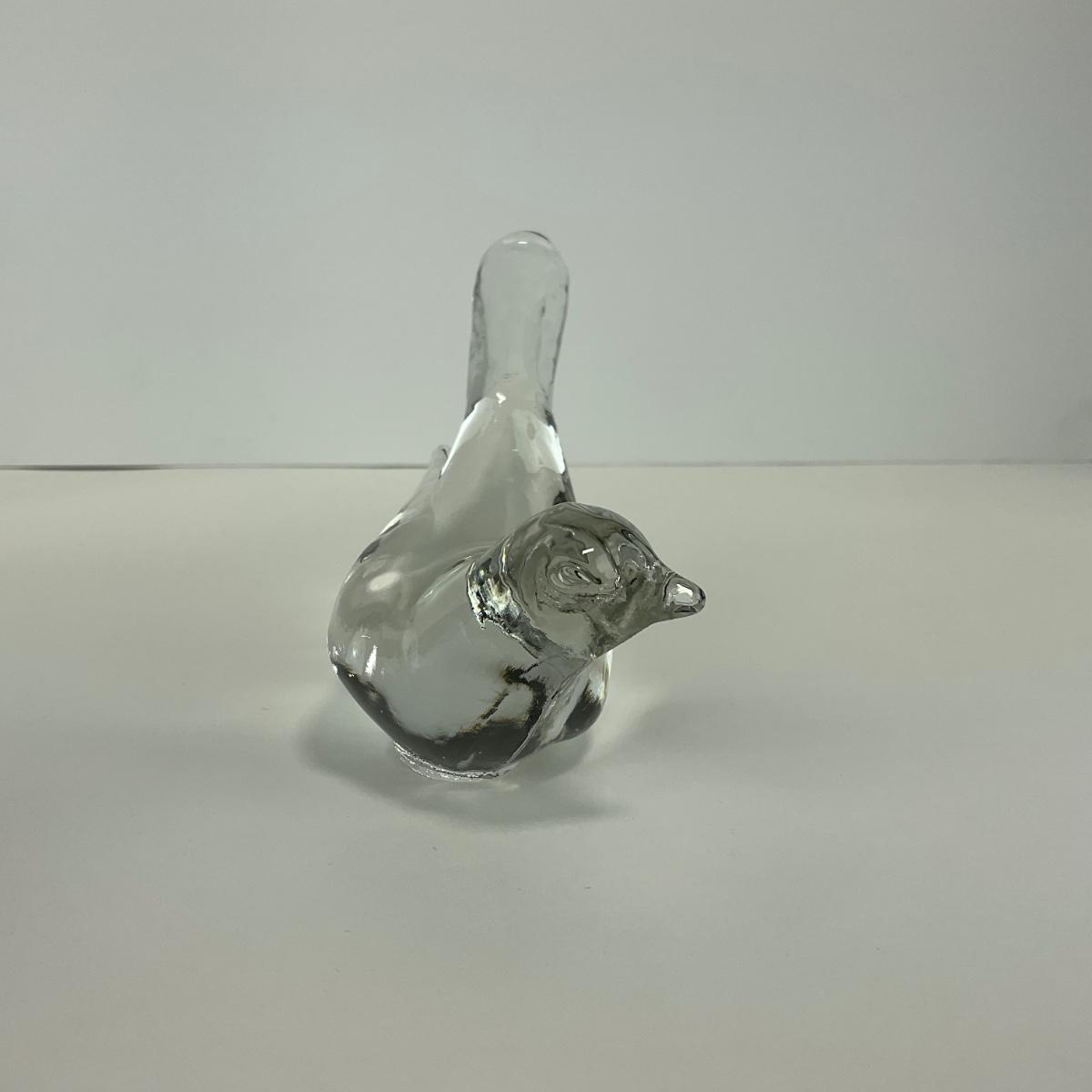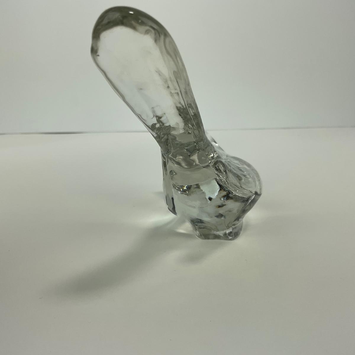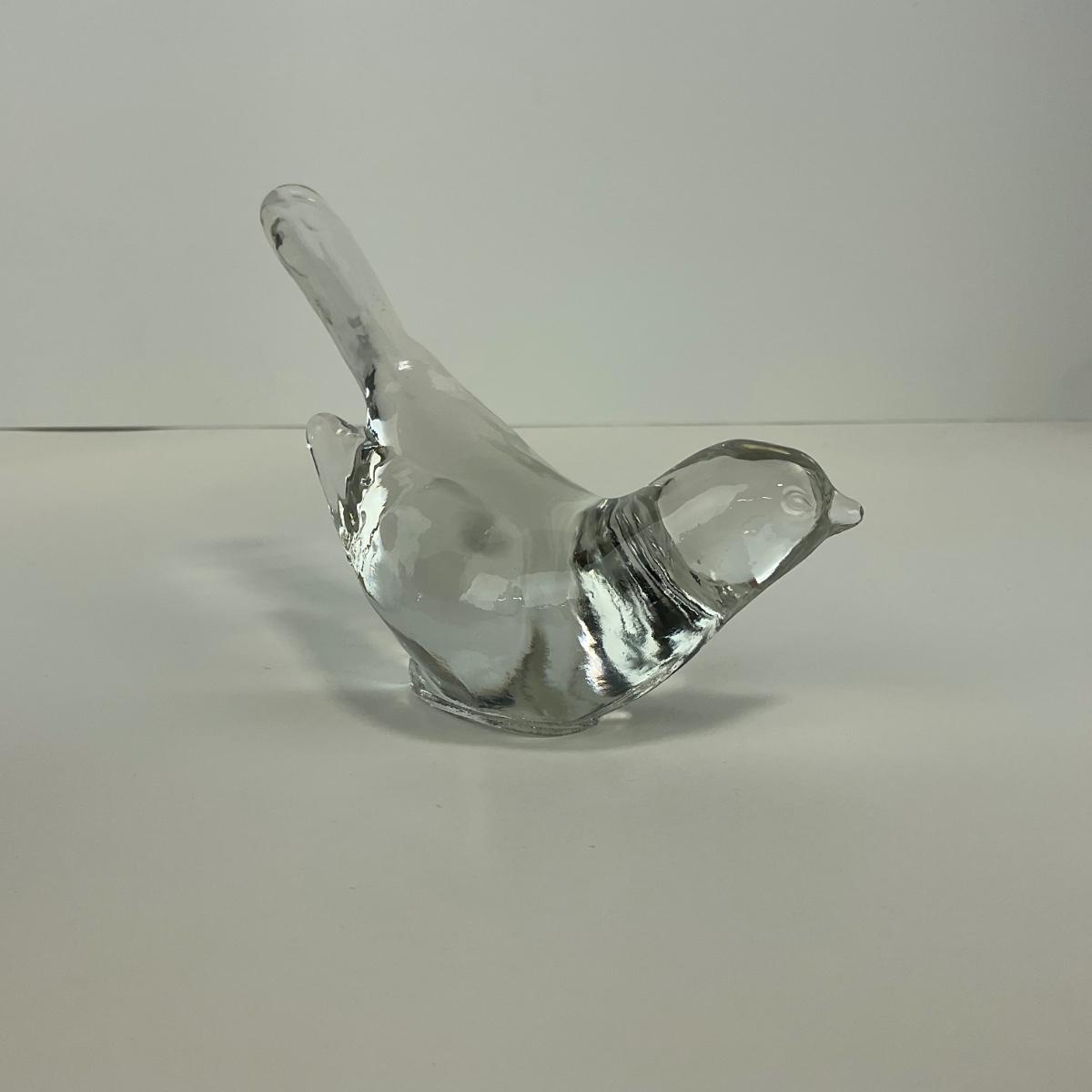 One believed to be Fenton clear glass happiness bird long tail figure. This piece does have some scuffs, scratches, marks, or slight damage, but otherwise appears to be in great shape. Please see photos for details and condition. Any condition statement is given as a courtesy to a client, is an opinion, and should not be treated as a statement of fact. Reference to condition written, oral or within a condition report shall not be regarded as a full account of condition and may not include all defects, alterations, or restorations. Absence of a condition report does not imply a lot is flawless or lacking imperfections or damage. Katherine’s Auction & Appraisal Service shall have no responsibility for any error or omission. Returns shall not be accepted on the basis of condition. ::: Shipping is available on this lot. If you require shipping you must let us know at the close of the auction. We will coordinate with you after the item has been won. Shipping fees will include insurance up to or exceeding the value of all items being mailed. If you have any questions regarding this lot please contact the auctioneer either via this website, by direct email or by phone. PICK UP TIMES and other important information can be found in the TERMS and DESCRIPTION of the auction. Please take a look for pertinent information. Thanks!