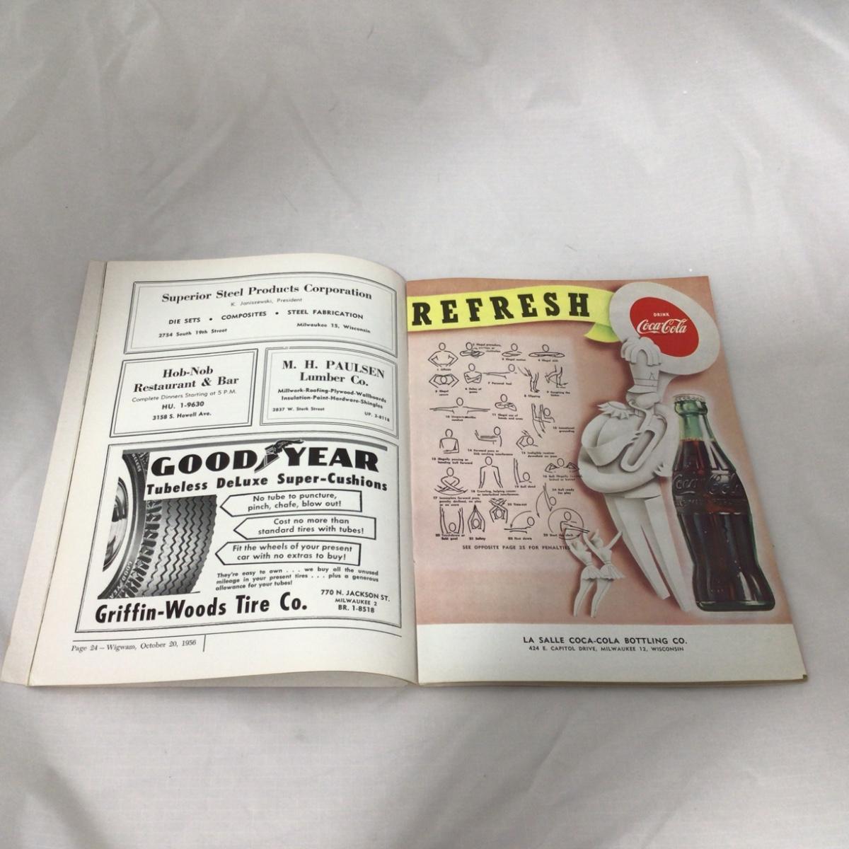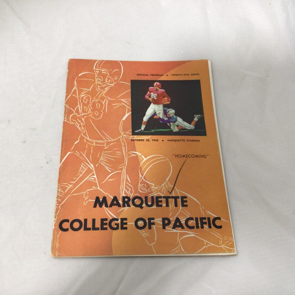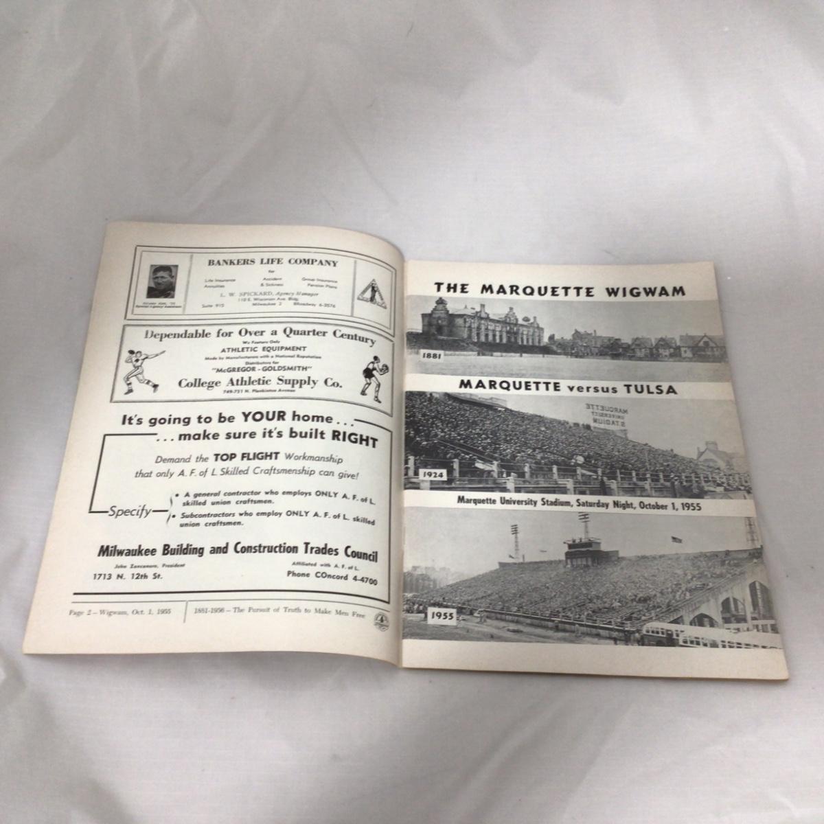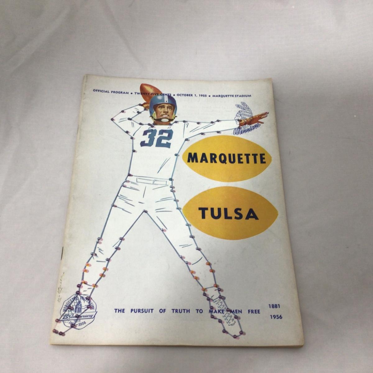 Two official Marquette football programs. One Marquette and Tulsa from Oct. 1, 1955 and one from Oct. 20, 1956. Please see photos for details and condition. ::: Shipping is available on this lot. If you require shipping you must let us know at the close of the auction. We will coordinate with you after the item has been won. Shipping fees will include insurance up to or exceeding the value of all items being mailed. If you have any questions regarding this lot please contact the auctioneer either via this website, by direct email or by phone. PICK UP TIMES and other important information can be found in the TERMS and DESCRIPTION of the auction. Please take a look for pertinent information. Thanks!