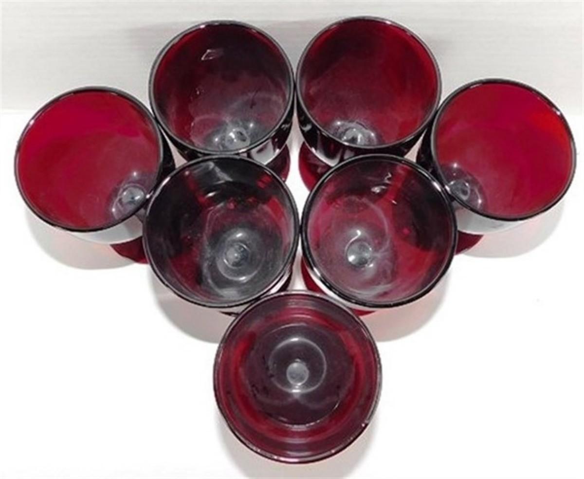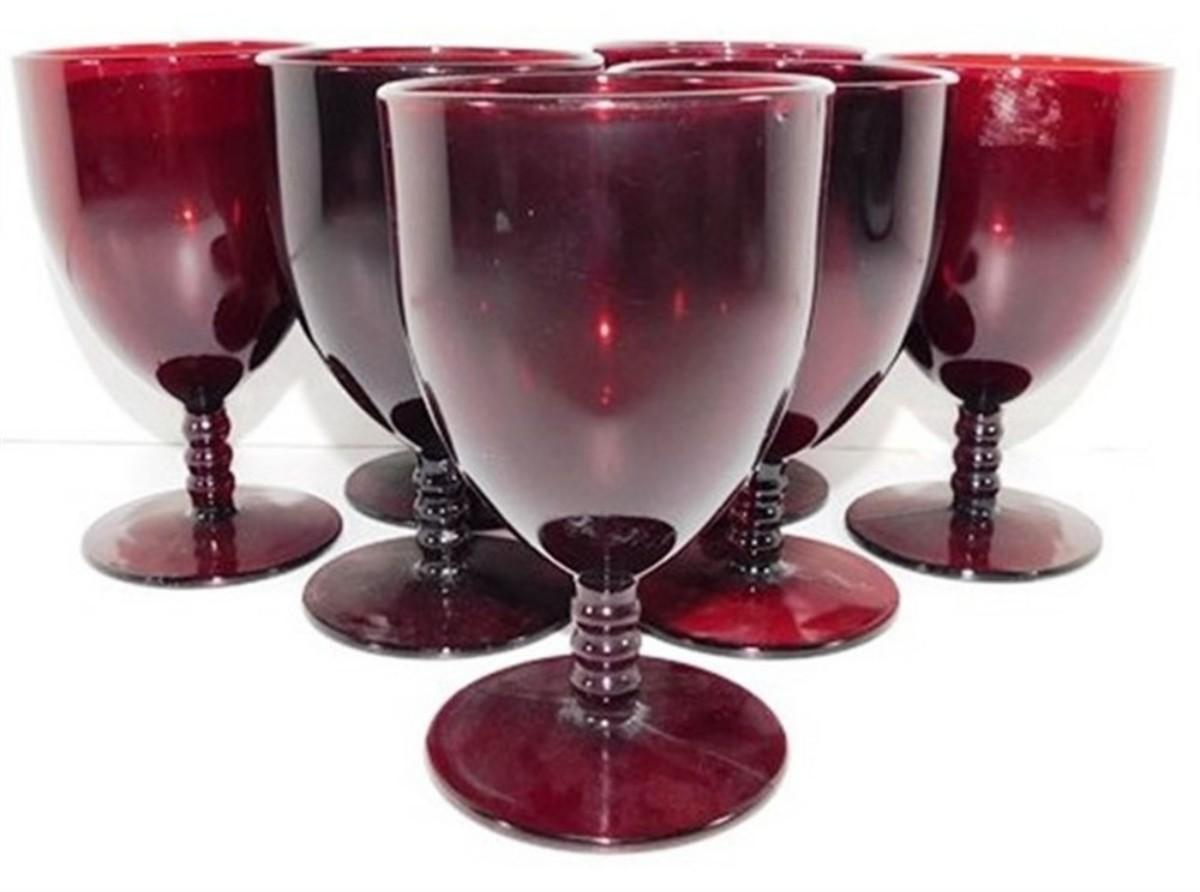 225 Lot of 7 Anchor Hocking Ruby Red Water Goblets Beaded Stems 5 1/4 x 3