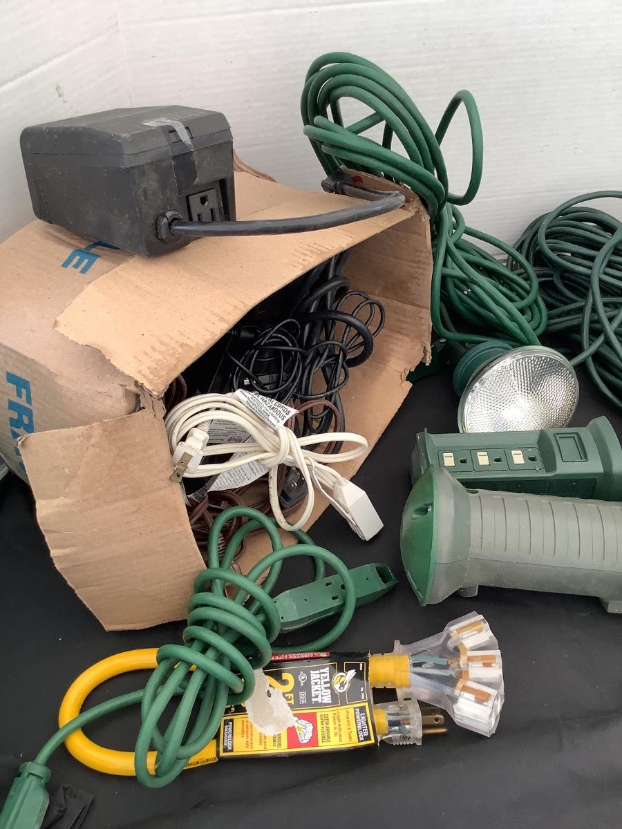 Lot of Indoor/Outdoor Extension Cords/Floyd Lights/Power Strip