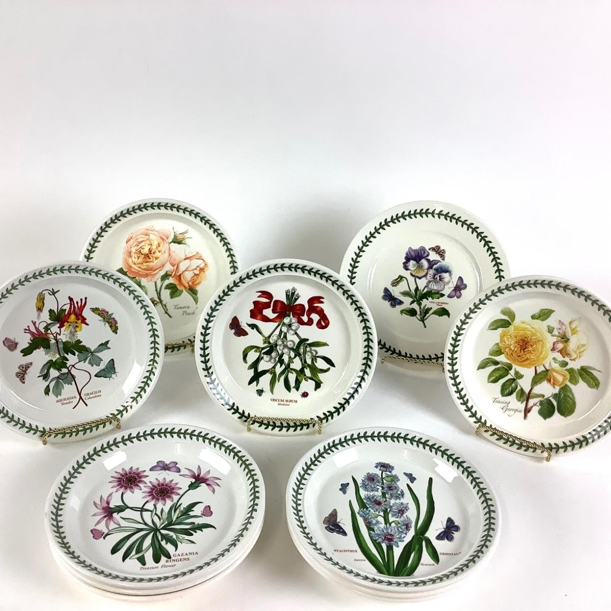 Lot of ten 8.5"Dia vintage and newer white and floral salad plates by Portmeirion in the Botanic Garden pattern. Some with vintage and some with new backstamps..