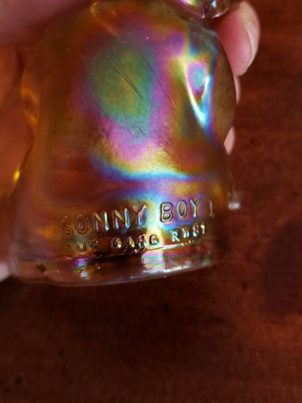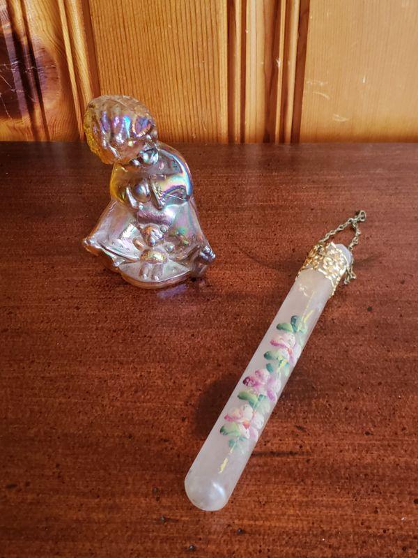 2-257: Carnival Glass "Sony Boy" and Antique Flower Holder