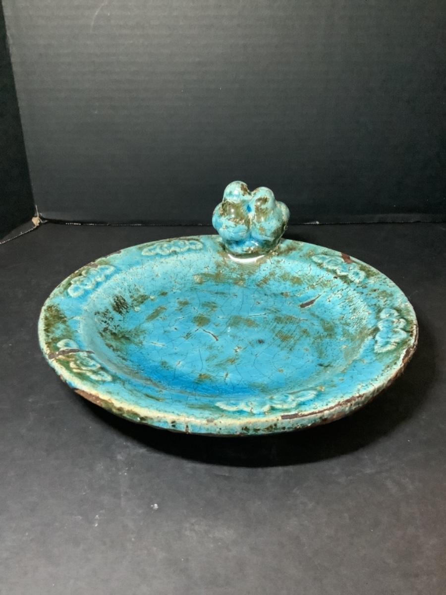 1 ) Pottery Vessel with Love Birds 9.75” Round
