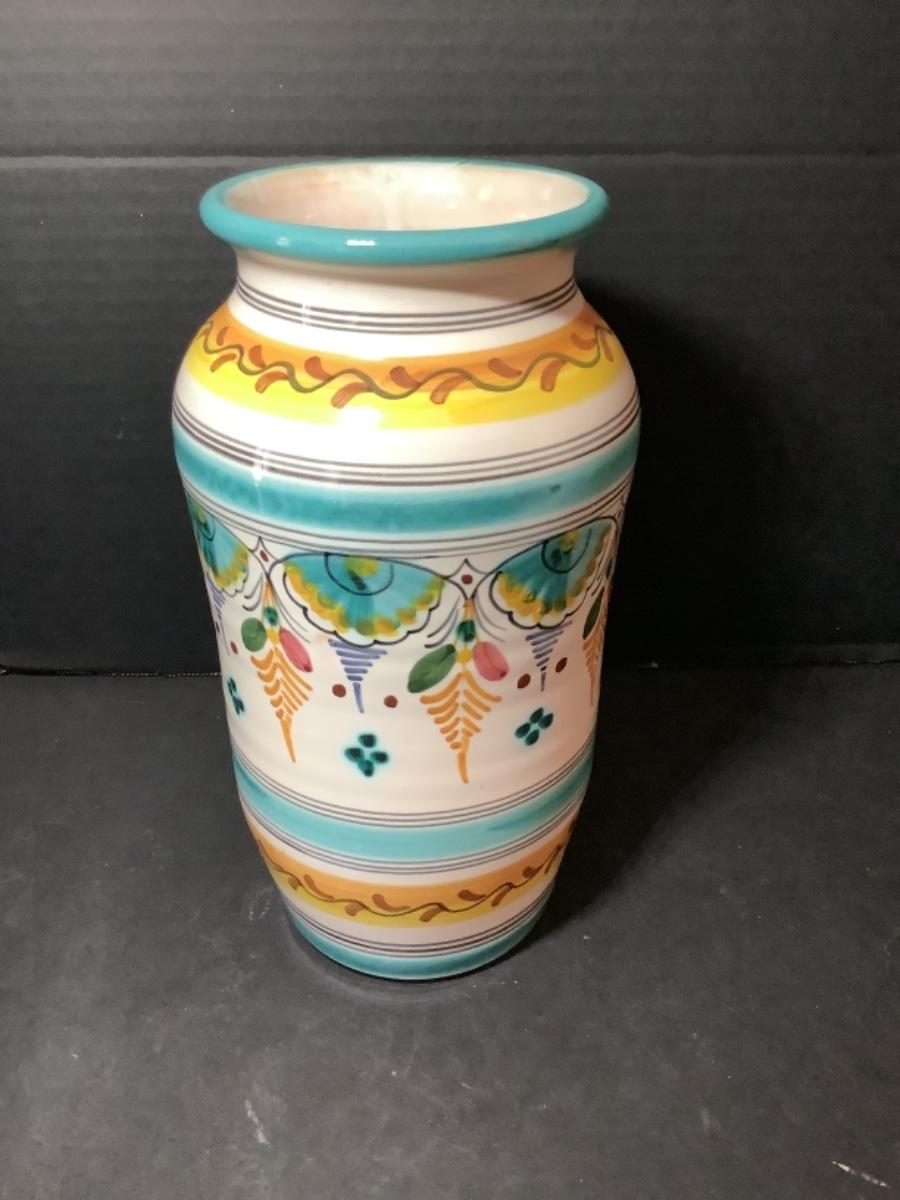 1 ). Pottery Vase 9.75” Tall x 5” Round